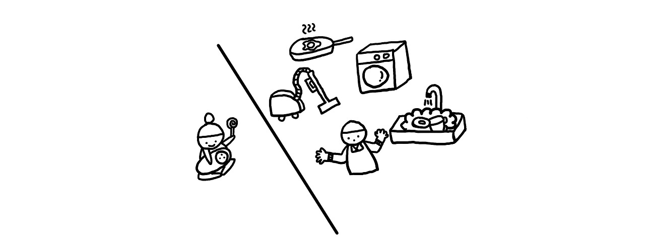 그로부터 2년 뒤, 아들이 태어났다. 요란스러운 입덧과 조산기로 입원까지 했던 힘든 출산이었다. 점점 더 가사는 멀어져 갔고, 이때부터 우리의 역할은 완벽히 나뉘게 된다. 청소, 빨래, 설거지, 요리는 남편의 영역, 육아는 나의 영역.