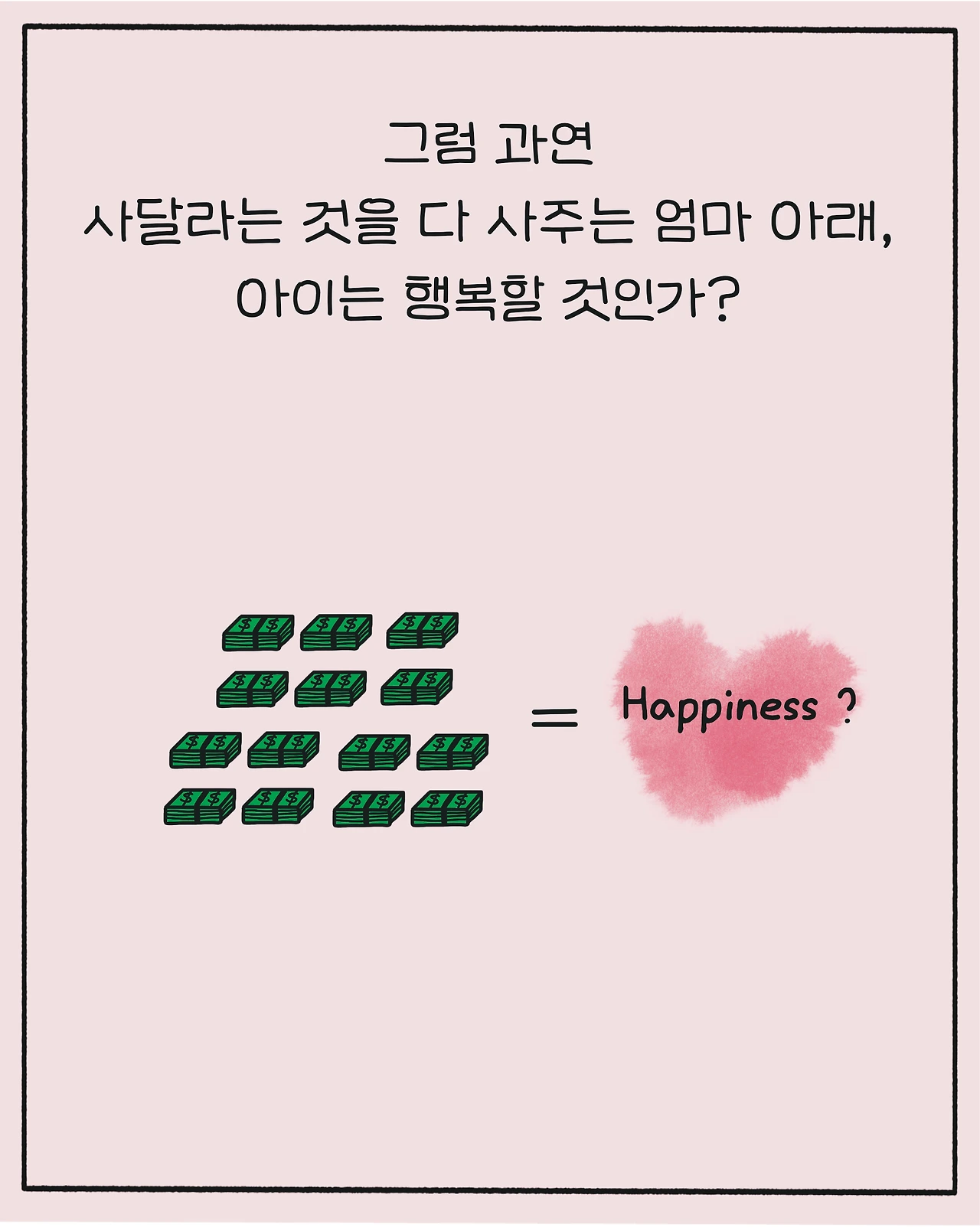 그럼 과연 사달라는 것을 다 사주는 엄마 아래, 아이는 행복할 것인가?