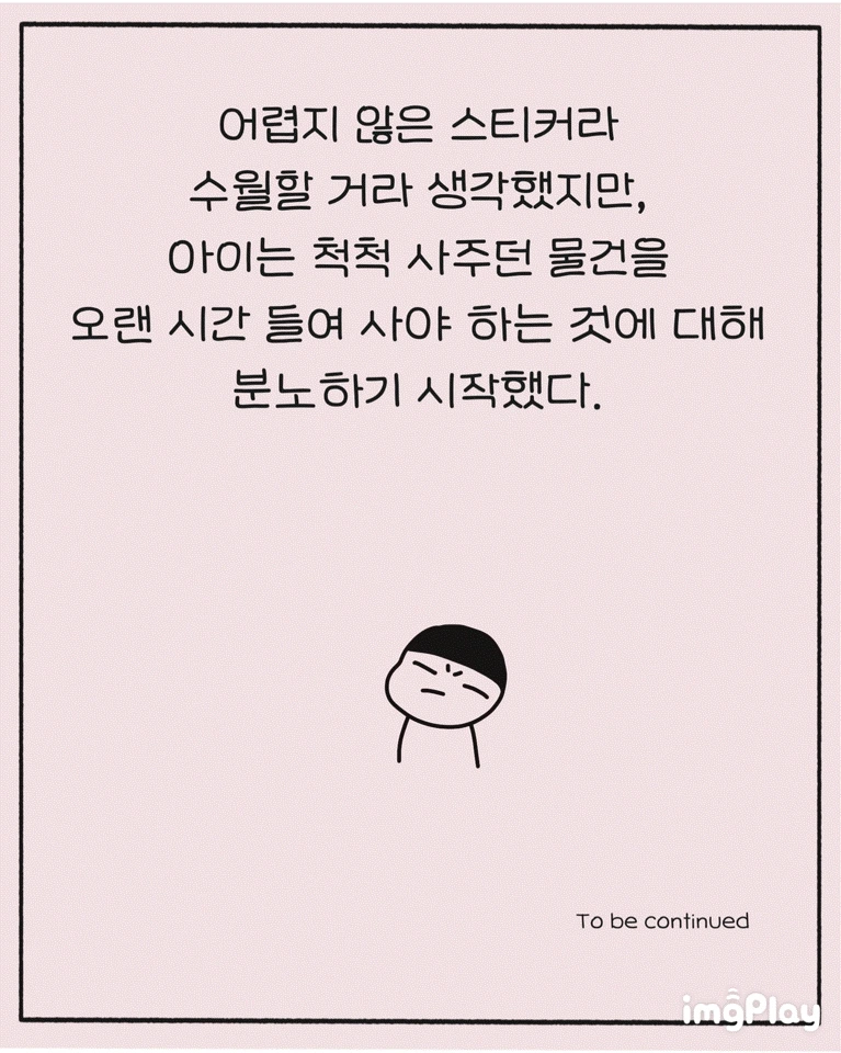 어렵지 않은 스티커라 수월할 거라 생각했지만 아이는 척척 사주던 물건을 오랜 시간 들여 사야 하는 것에 대해 분노하기 시작했다.