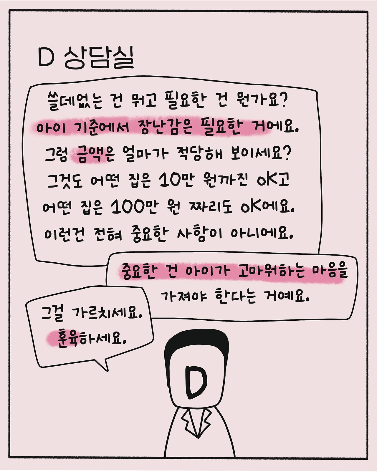 중요한 건 아이는 무언가 사줄 때 고마워하는 마음을 가져야 한다는 거예요.