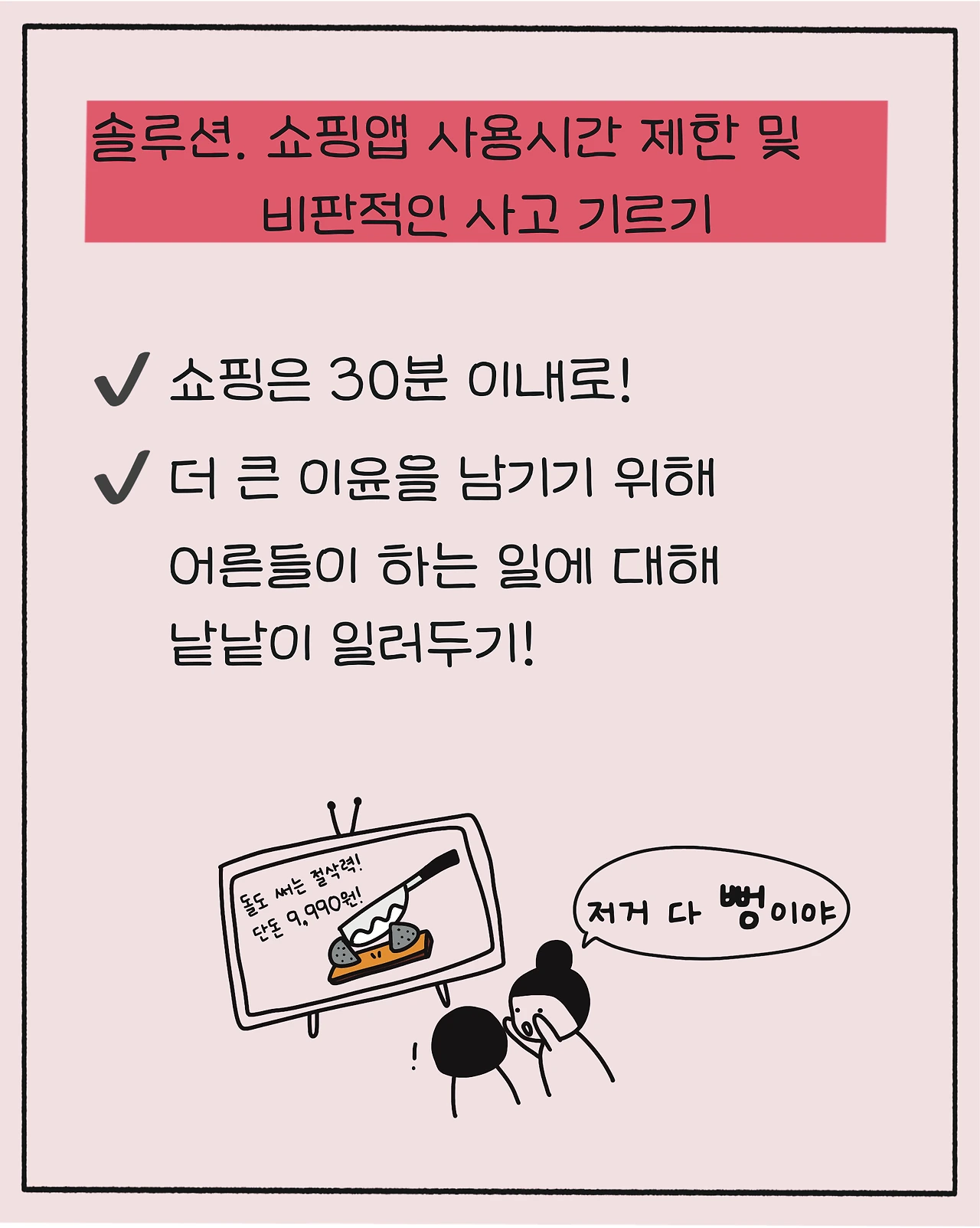 솔루션: 쇼핑앱 사용시간제한 및 비판적 사고 기르기