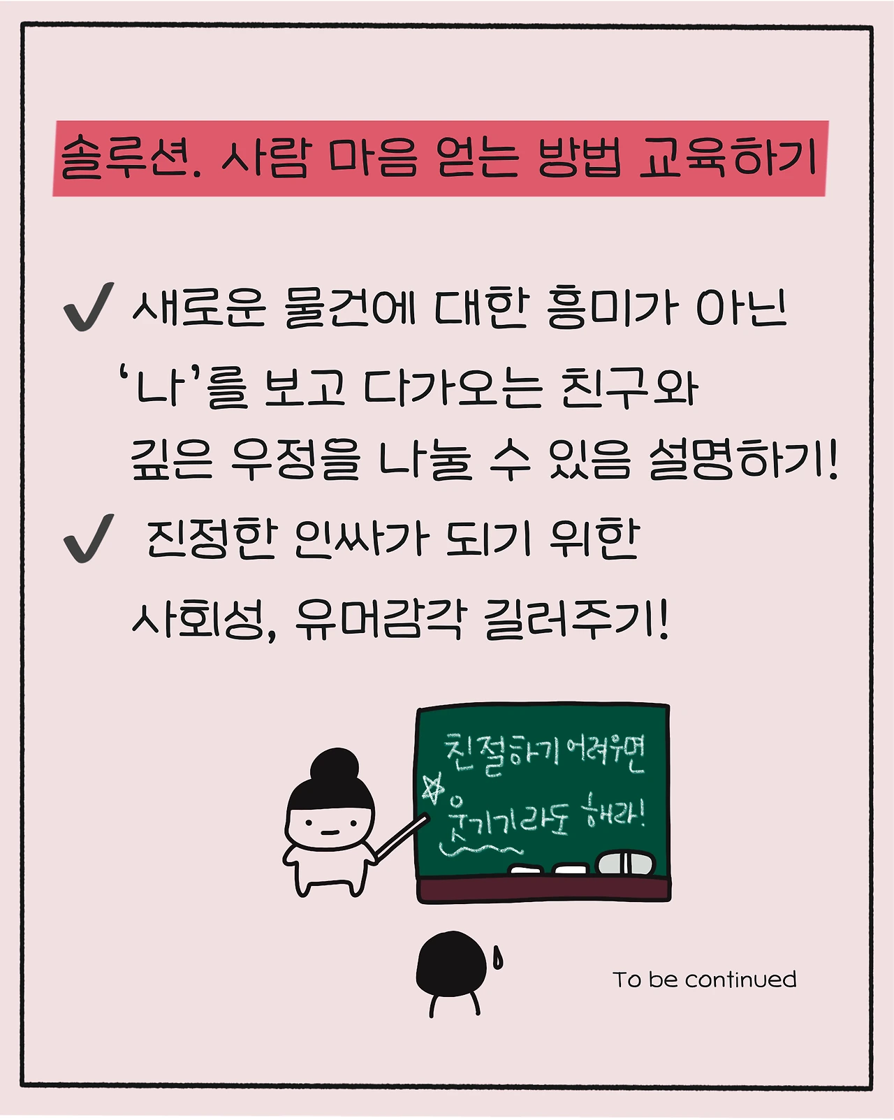 ‣ 진정한 인싸가 되기 위한 사회성, 유머감각 길러주기.