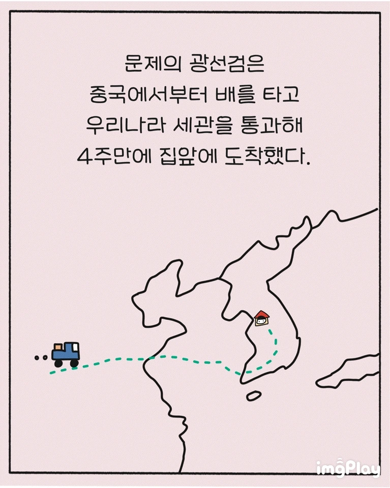 문제의 광선검은 중국에서부터 배를 타고 우리나라 세관을 통과해 4주 만에 집 앞에 도착했다.