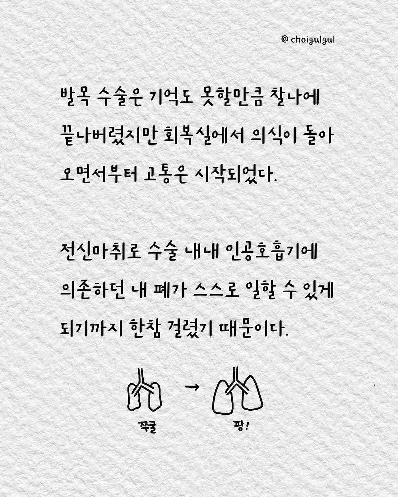 #전신마취후유증 #환자 #병원 #수술 #후기 #서러움 #발목수술 #전신마취 # #골절 #발목골절 #어쩌다골절 #최굴굴 #인스타툰 #에세이 #후유증 #그림에세이 #공감 #브런치 #글쓰기