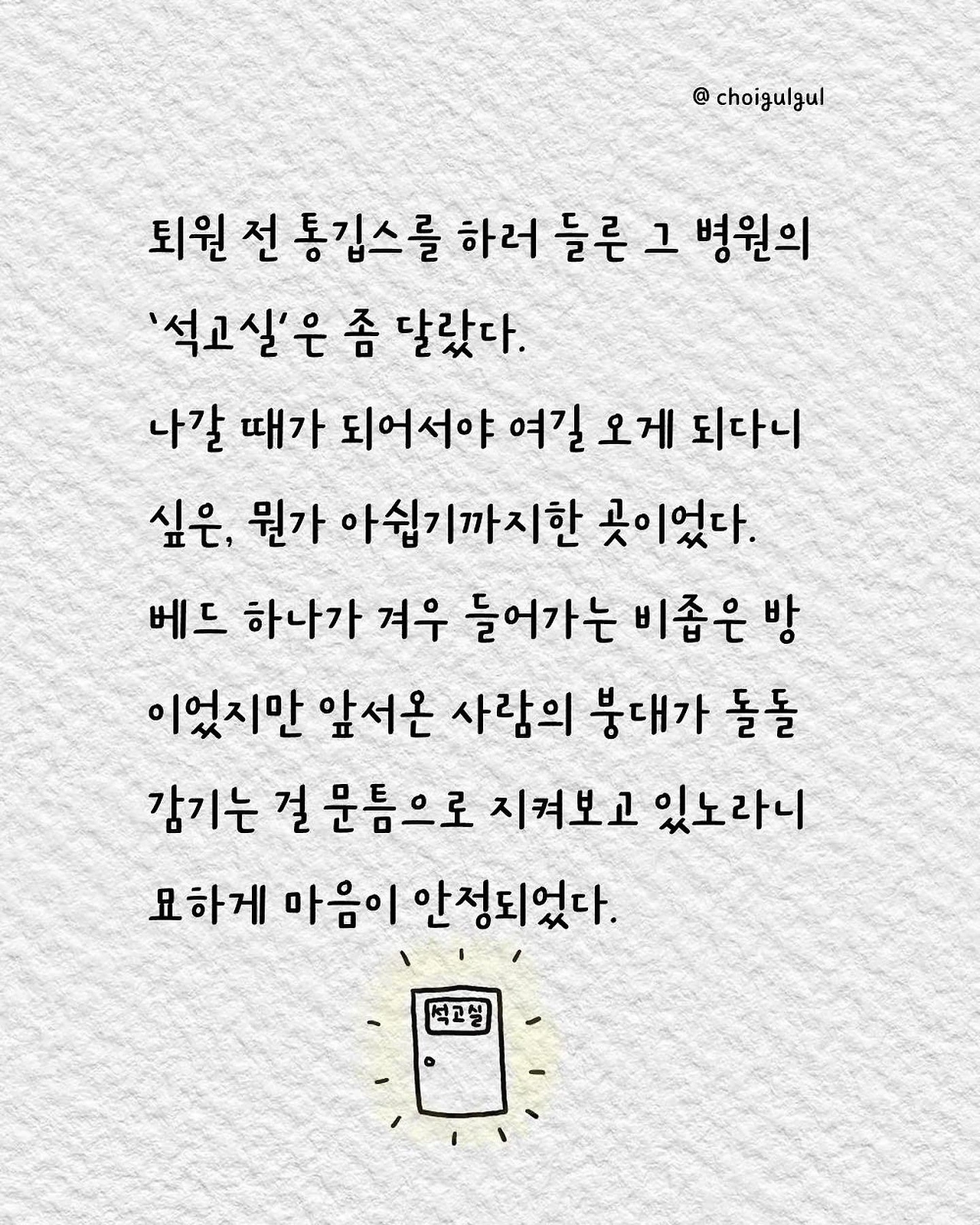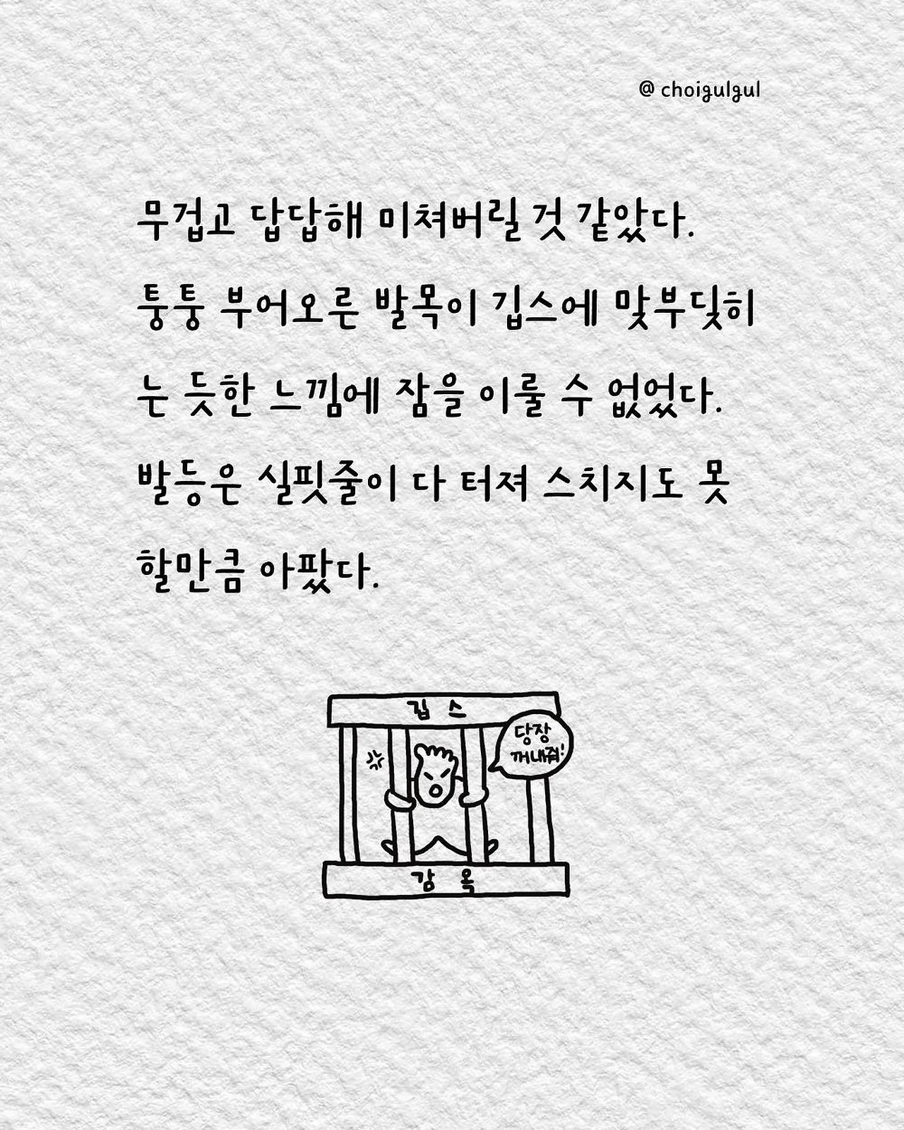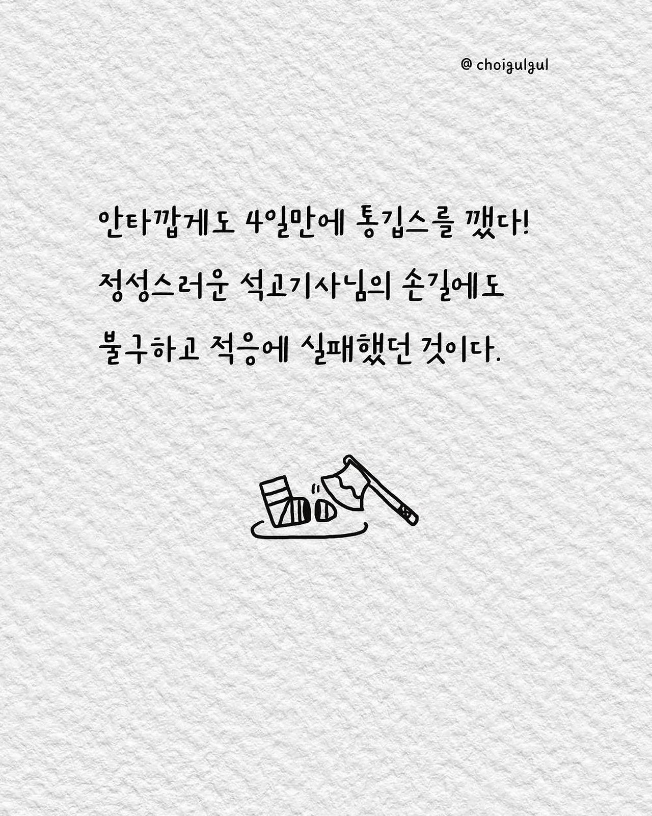 #깁스 #통깁스 #반깁스 #환자 #이프지말자 #깁스캐릭터 #골절 #발목골절 #어쩌다골절 #최굴굴 #인스타툰 #에세이 #병원 #환자 #수술 #입원 #레지던트 #의사 #간호사 #간병인 #보호자 #석고실 #석고기사 #장단점 #브런치 #글쓰기