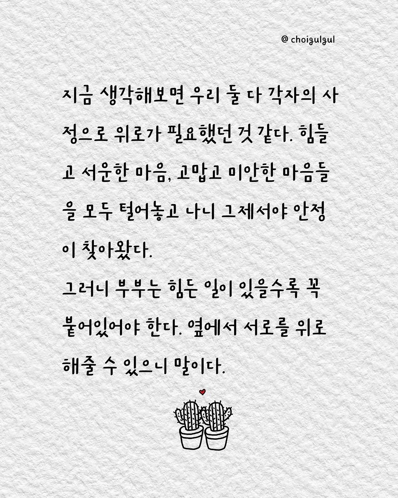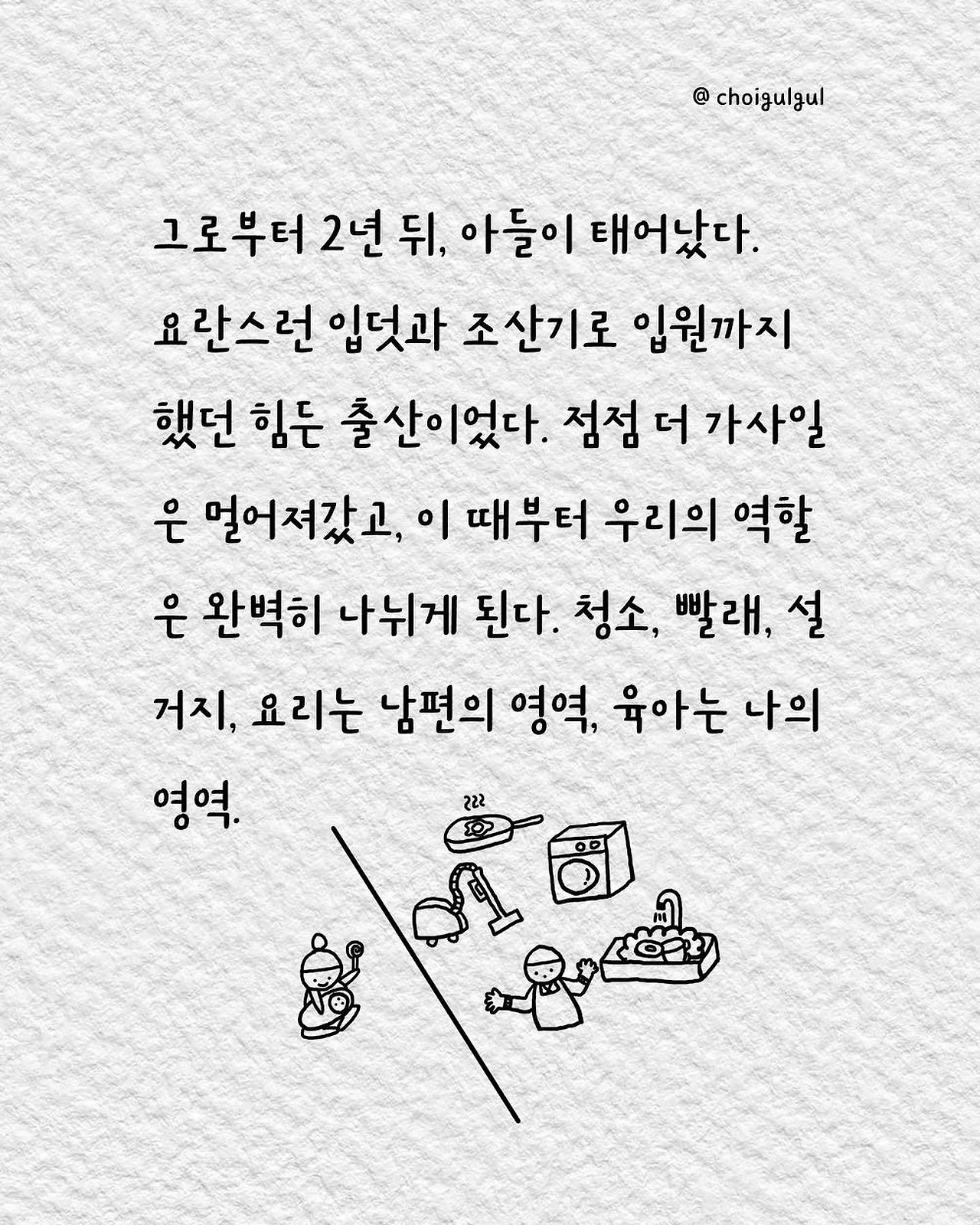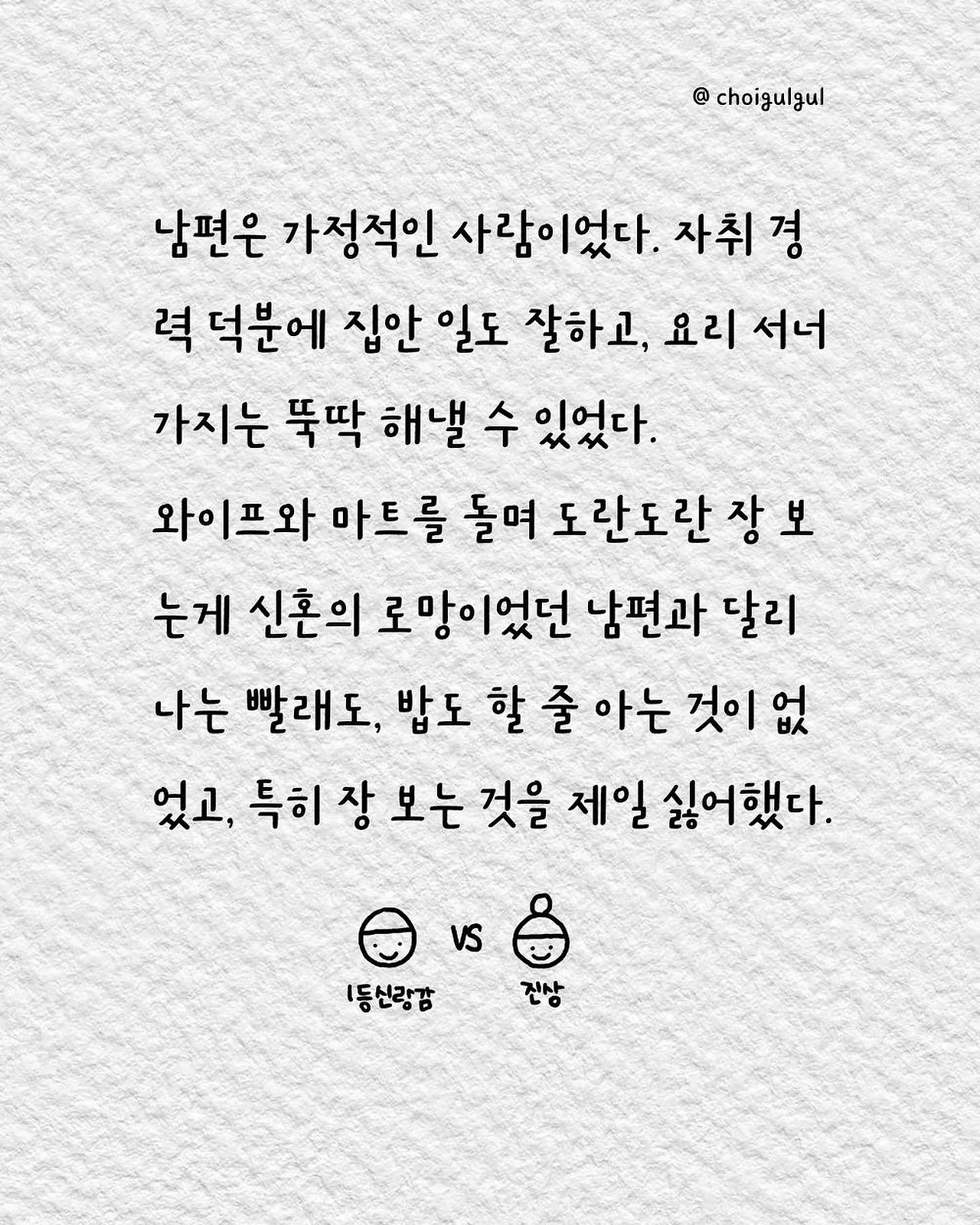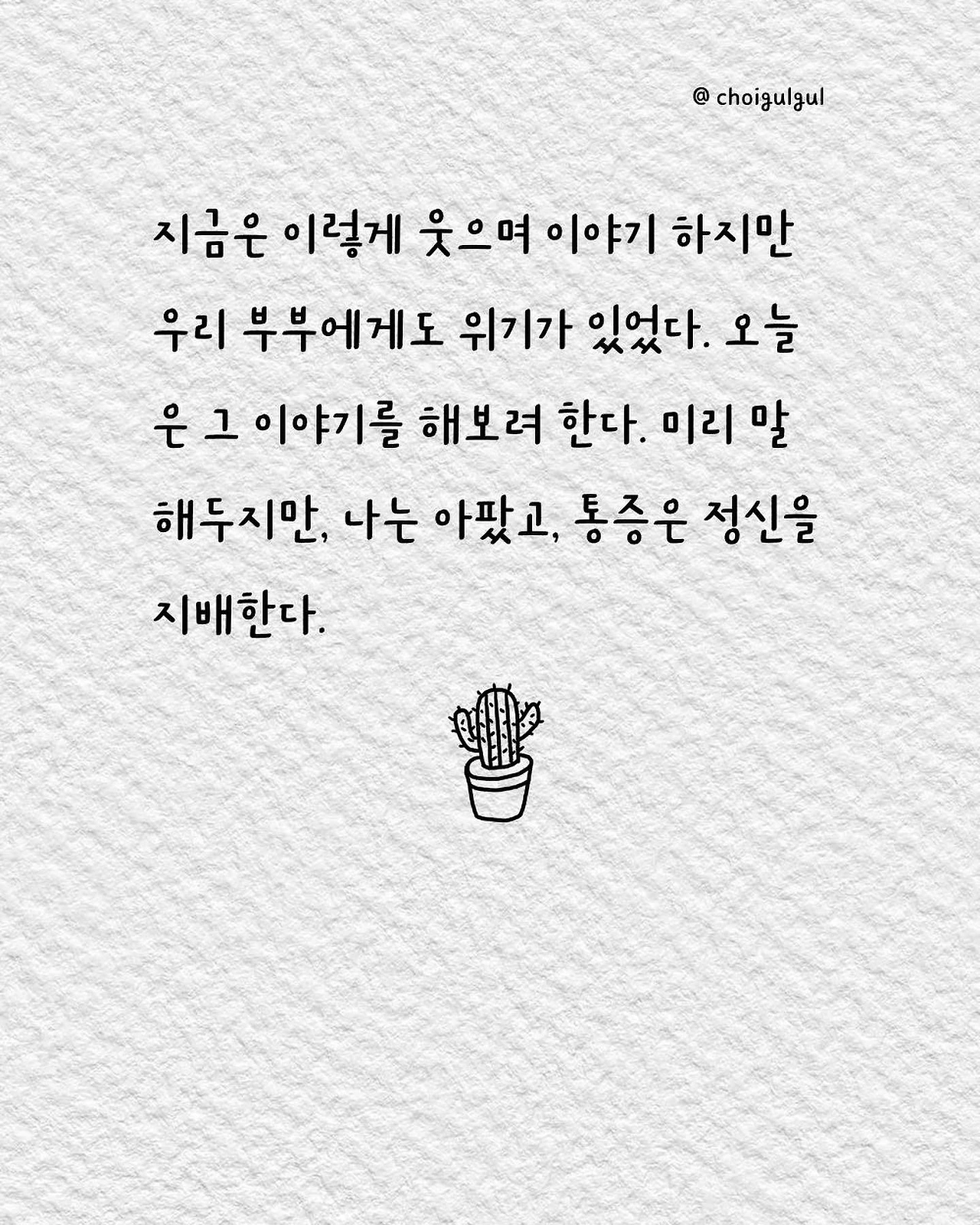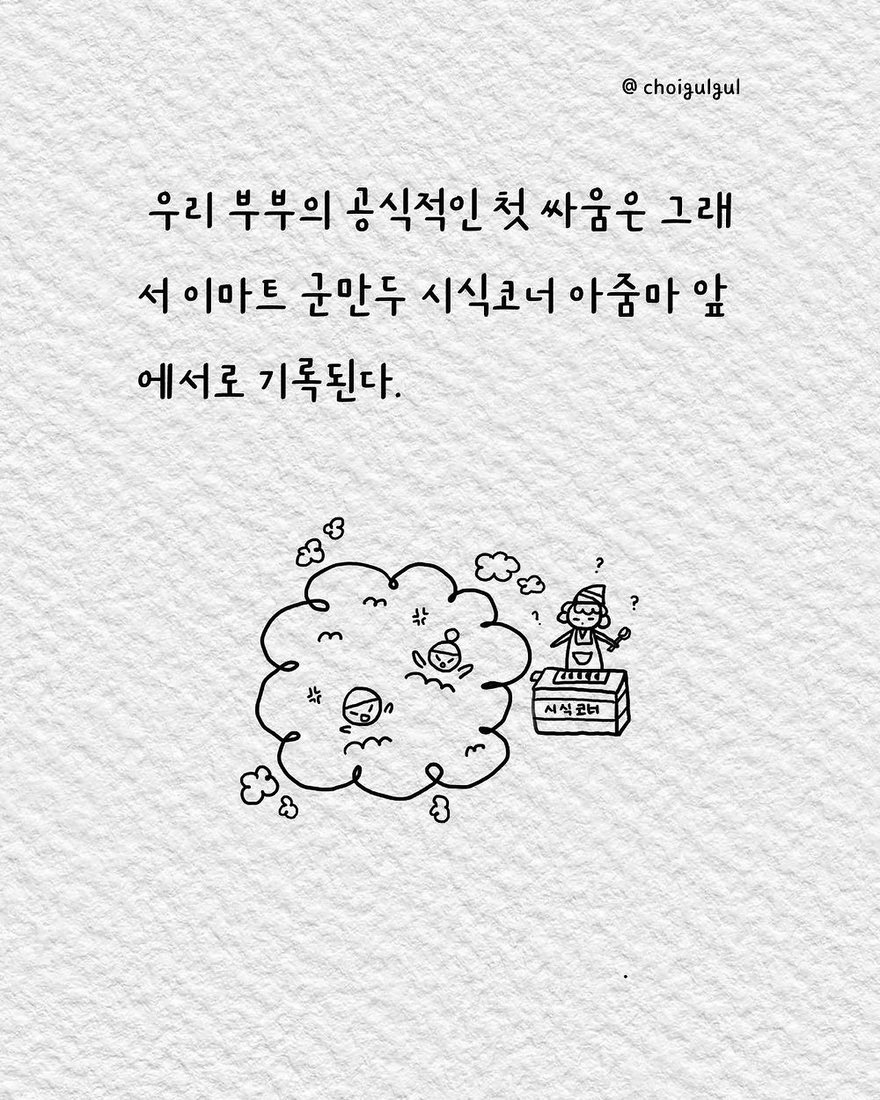 #부부싸움 #아내 #와이프 #진상 #남편 #수발놈 #발음주의 #위로 #가사노동분담 #육아 #가사일 #집안일 #싸움 #칼로물베기 #백년해로 #어쩌다골절 #최굴굴 #인스타툰 #공감글 #에세이 #부부 #사과 #사과는애플워치 #사랑해 #미안해 #고마워