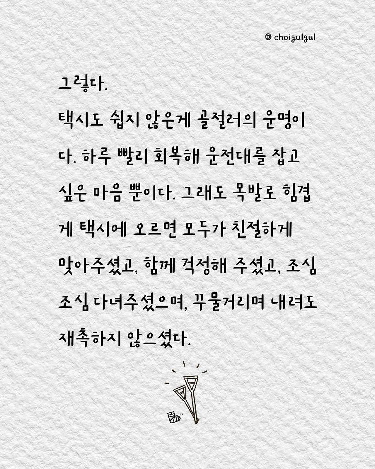 #목발 #택시 #택시기사님 #감사 #최굴굴 #골절일기 #어쩌다골절 #오너드라이버 #운전 #발목골절 #티맵택시 #카카오택시 #총알택시 #멀미 #아직살만한세상