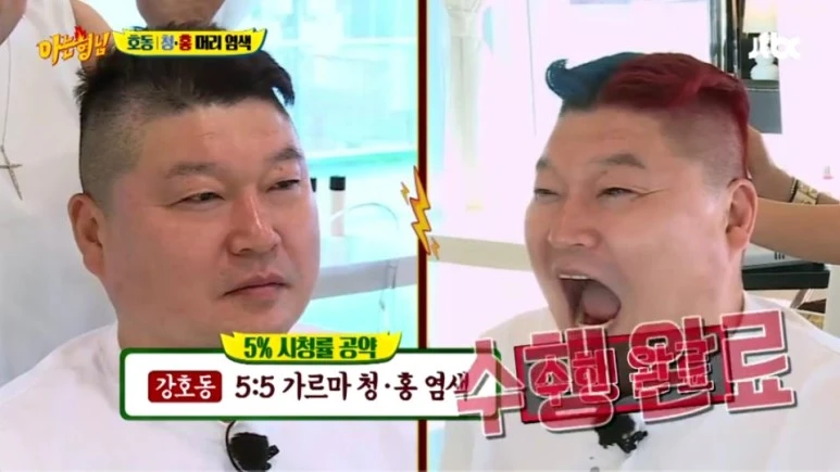 강호동은 귀엽다. 큰 덩치와 약간의 폭력성에서 나오는 모순적인 귀염성이 있다. 사투리까지 써서 더 귀엽다. 요즘 넓은 닭벼슬 같은 머리를 빨강파랑으로 염색했다, 아이보리로 염색했다 하는데, 작은 미용실 의자에 꽉 끼어서 염색 받는 걸 생각하니 너무 귀엽다. 물론 강호동은 큰 의자에서 편히 염색을 받았지만 상상을 해보자면 그렇다는 뜻이다.