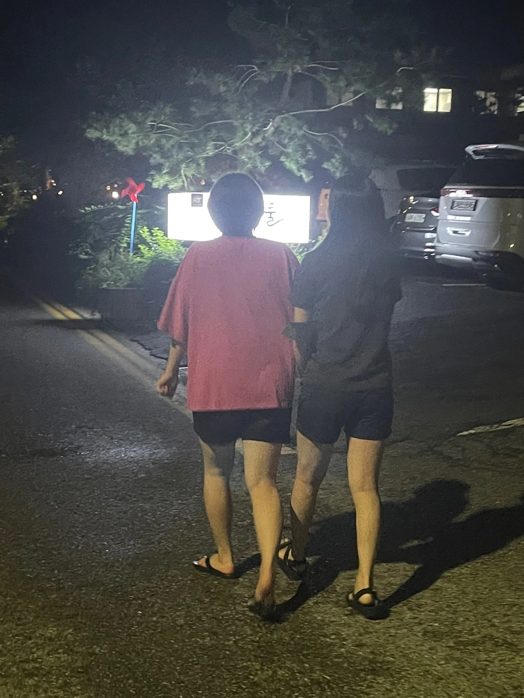 바로 다시 머리를 들었다. 안되겠다. 그냥 서서 샤워를 하자. 씻고 나오니 다른 애들도 꿈틀꿈틀 깨어나고 있었다. 나는 어제 나의 행적을 수소문하고 다녔다. 역시나 라니의 핸드폰에 모두 저장돼 있었다. 산책 나가서 찍은 사진은 흡사 전통놀이 한마당이었다. 나와 형이가 청도 소싸움을 하고 있었고 나와 윤니는 계주를 하고 있었다. 설명을 들으니 내가 형이한테 어부바를 하려고 시도했고 그러다 갑자기 막 뛰기 시작했다고 한다. 내가 엎어질까봐 걱정된 윤니가 총총 뛰어와서 숙소로 연행해갔다고 한다. 그랬구나... 그랬어...
