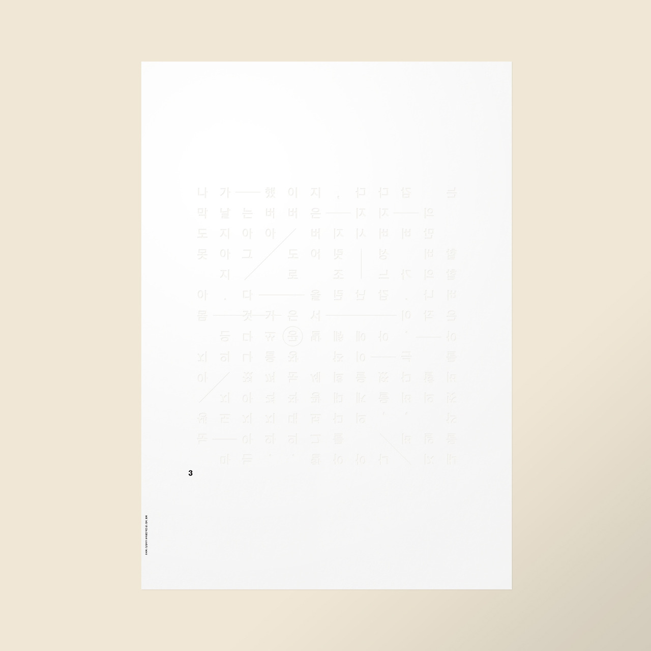 실제로 전시에 사용한 포스터는 ‘문드림’이라는 특수지를 사용해 전면 형압(누르는) 가공으로 작업했다. 부분적인 실크 인쇄를 빼곤 별도로 인쇄 작업은 하지 않았다.