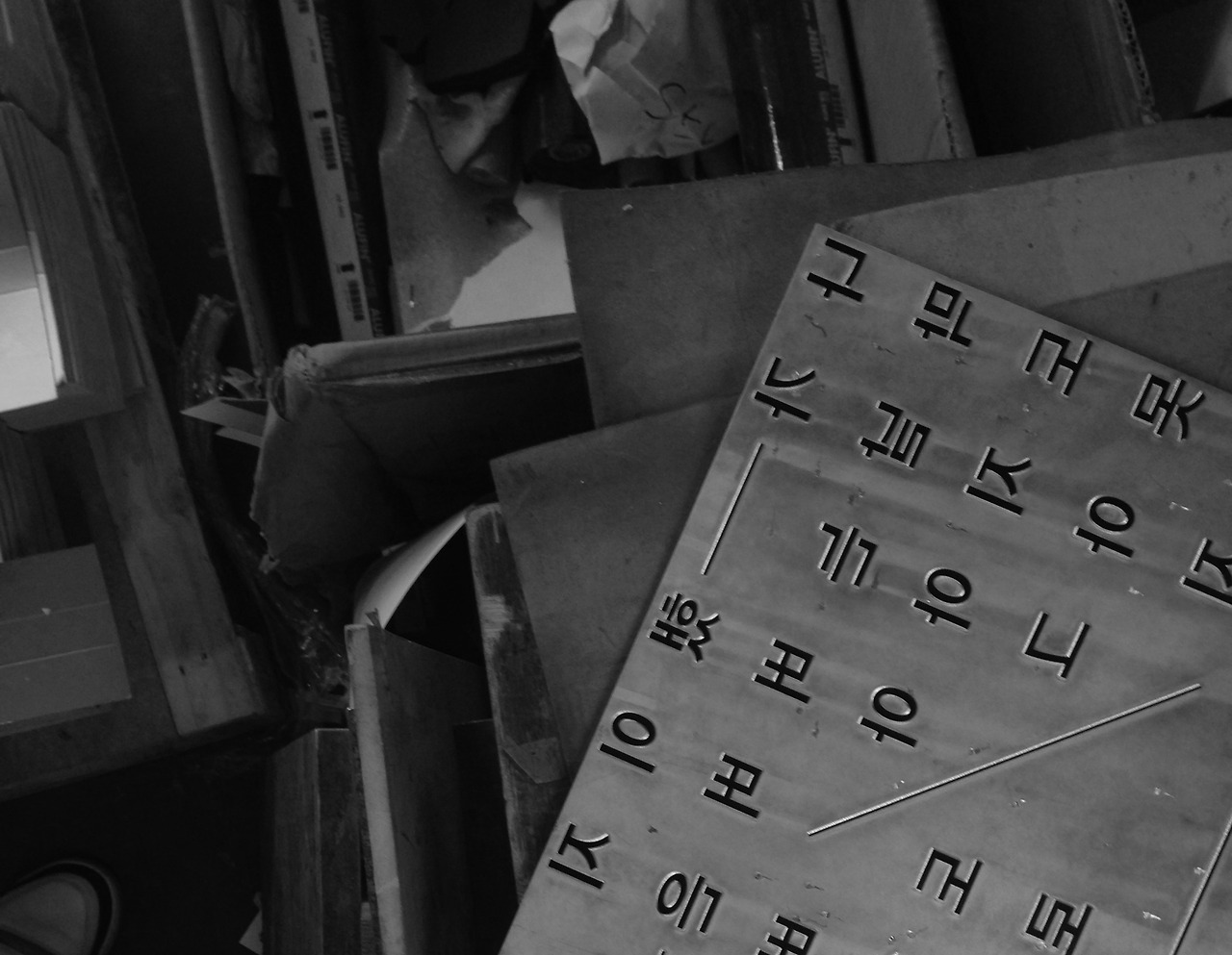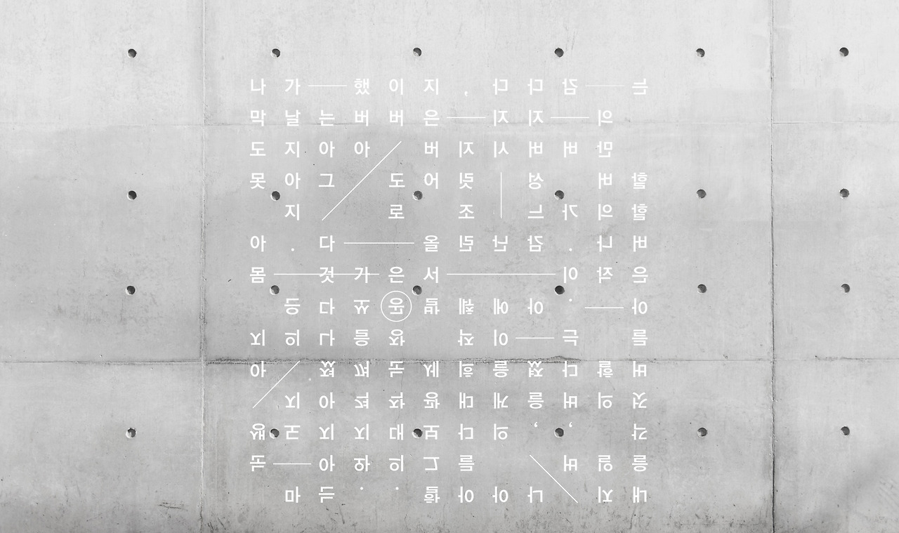 내가 받은 단어는 ‘가장’이었다. (나는 개전식에서야 그 단어가 '소설가 구보씨의 일일'에서 발췌한 한 문장 일부라는 것을 알았다) 가장은 ‘가장 좋은 것’을 의미하는 ‘가장’과 한 가정을 이끄는 사람을 뜻하는 ‘가장’ 등 여러 가지 의미로 쓰인다 이런 중의적인 의미를 반어적이고 위트 있게 쓸 수 있는 단어를 고민하다 ‘가장자리’를 떠올렸다. 가장자리는 일반적으로 외진, 구석자리를 뜻한다. 가장자리는 중심, 핵심이 되는 자리가 아니다. ‘가장’이란 여럿 중 제일을 의미하는 부사지만 가장자리는 역설적으로 소외된 곳을 의미한다. 디자인을 할 때에도 상대적으로 시선을 끄는 면적이 아니다. 가장家長의 자리 역시 한 가정의 중심이 되어야 하는 자리이지만, 다른 한편으론 소외받는 자리이기도 하다. 이런 중의적이고 역설적인 의미를 표현하고자 소설 ‘난장이가 쏘아 올린 작은 공’한 구절을 발췌해 간단한 규칙이 적용된 암호를 만들었다.