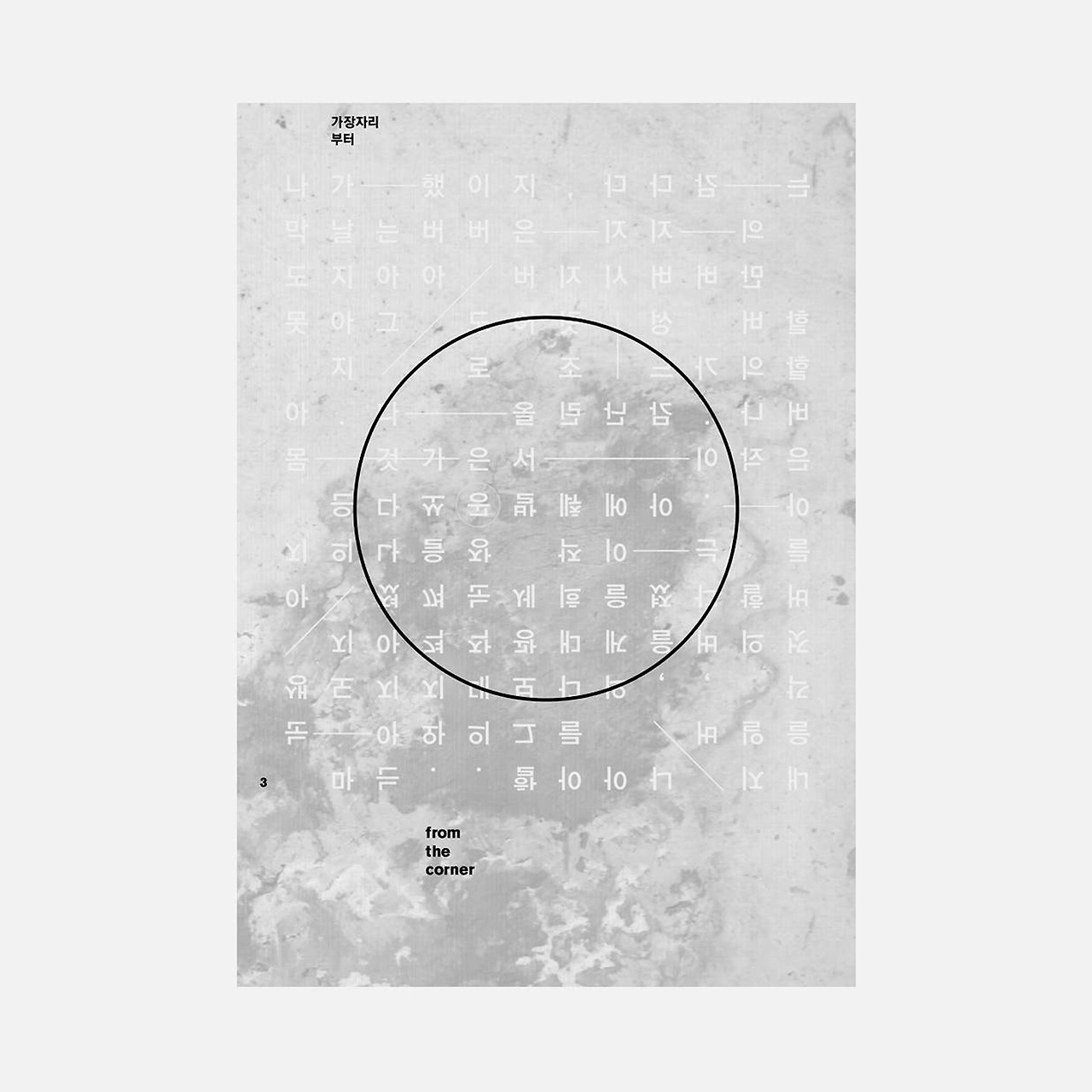 포스터에 적힌 의미 그대로 가장자리(구석)부터 빙 돌려가며 글자를 읽으면 아래 문장이 읽히도록 설계했다.