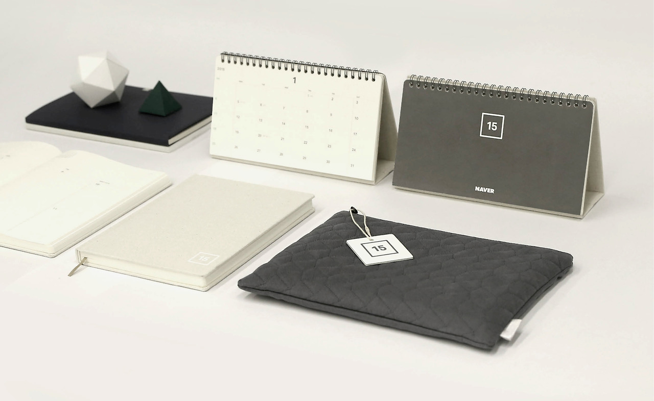 아래 이미지는 내가 2013년, 2014년에 네이버에서 작업했던 다이어리 세트와 2016년 이베이에서 작업한 다이어리 세트다. 세 프로젝트 모두 크고 작은 환경을 위한 고민이 담겨있어 짧게 소개하려한다. 14년 제품은 잉크를 절약하는 에코 폰트를 사용했고 꼭 필요한 최소한의 곳에만 인쇄/가공을 한 것이 특징이다. 박스 포장을 버리지 않고 탁상 캘린더로 재사용할 수 있게 제작했다. 15년 다이어리 세트는 돌가루 성분으로 만든 친환경 비목재펄프를 사용했고 박스 대신 재사용이 가능한 파우치로 포장했다. 이베이 다이어리 세트는 로우로우(RAWROW)와 협업해 박스 대신 가방을 만들어 스테이셔너리를 담아 포장했다. (*해당 프로젝트에 관한 내용은 여력이 된다면 자세히 정리해 다시 공유하려 계획하고 있다...여...력...이....된다...면...)