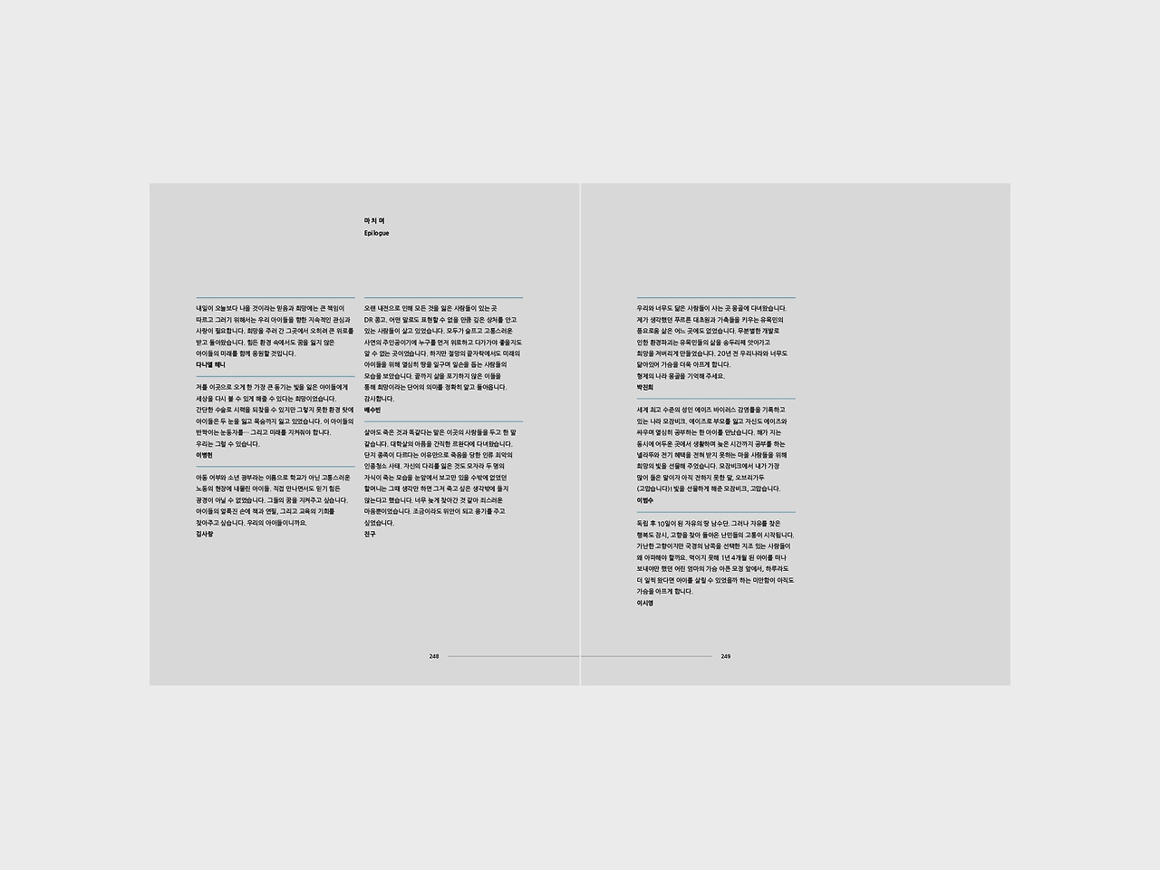 우리는 디자이너이다. 불가피하게 결과적으로 무언가를 계속 만들어내는 일을 한다. 책임감을 가지고 꼭 필요한 것인가 아닌가를 깊이 고민하고 스스로 의미가 없다고 생각한다면 가급적 만들지 않았으면 한다. 만들기로 결정했다면 제작에 불필요한 과정이나 가공이 없는지를 유심히 살펴봤으면 한다.