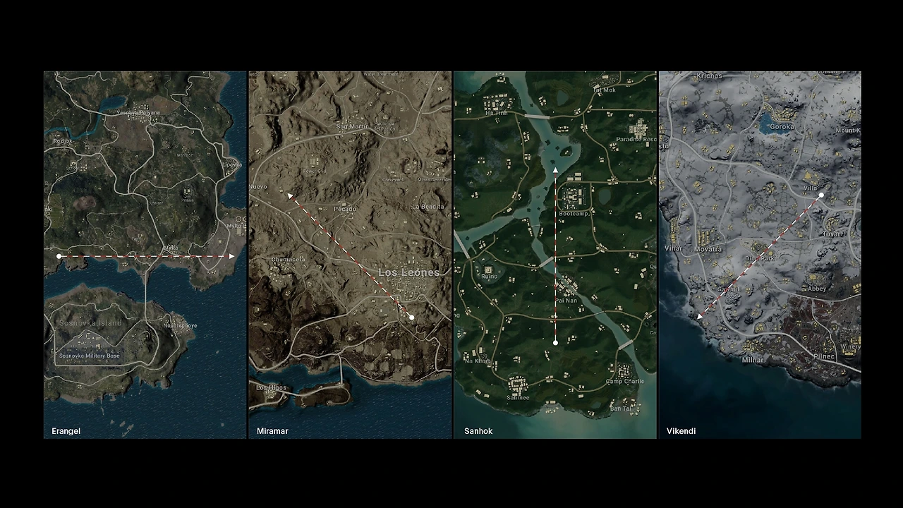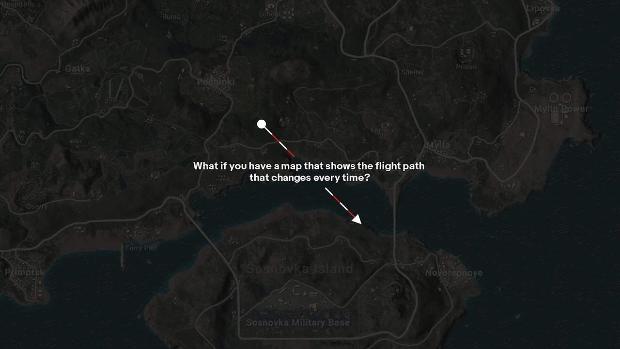 우리는 배틀그라운드 게임 진행에 맵과 비행기 경로가 중요한 요소라 판단했고 매번 바뀌는 비행기 경로를 표시할 수 있는 지도와 방향을 안내할 수 있는 경로선(화살표)을 유저에게 제공하기로 했다.