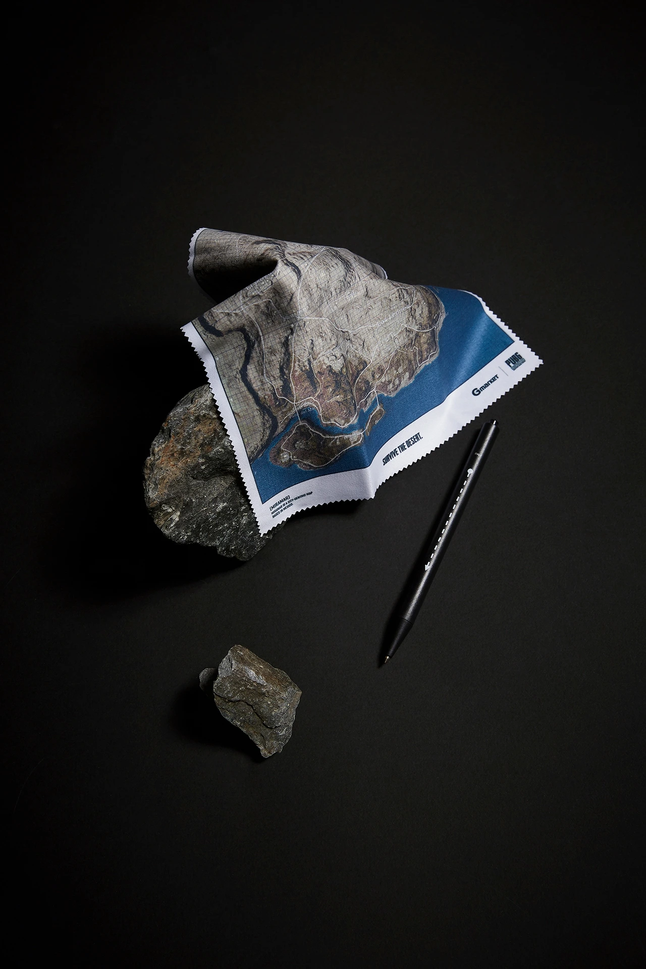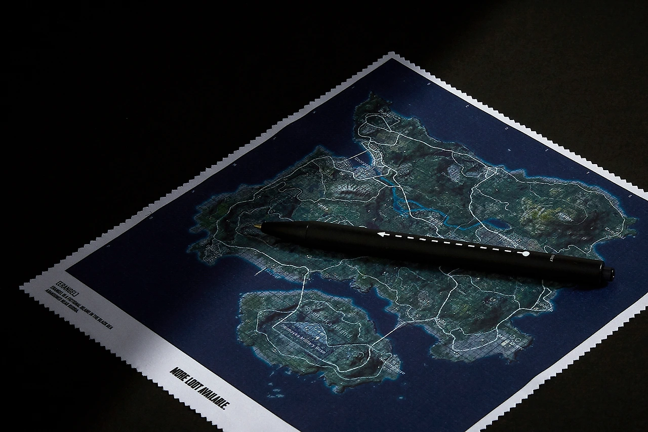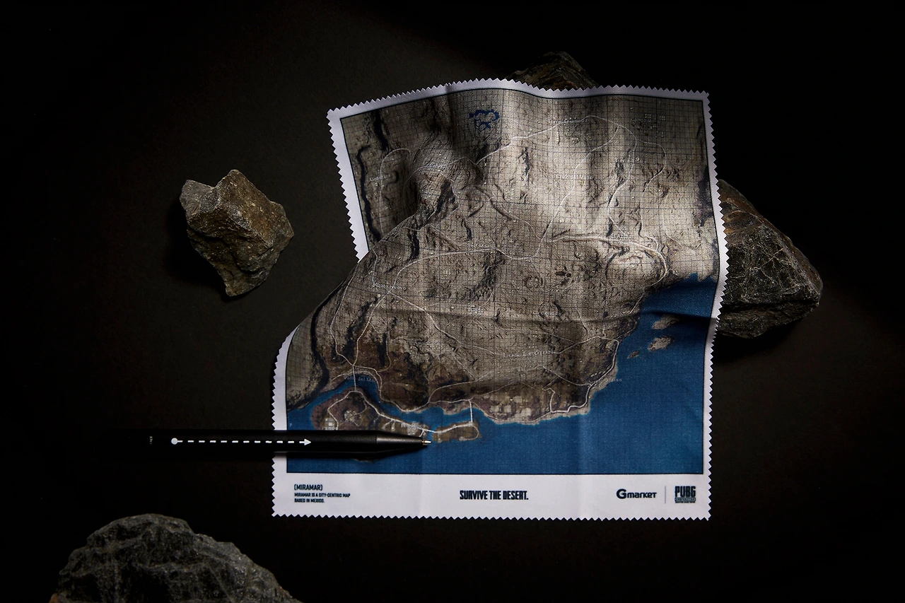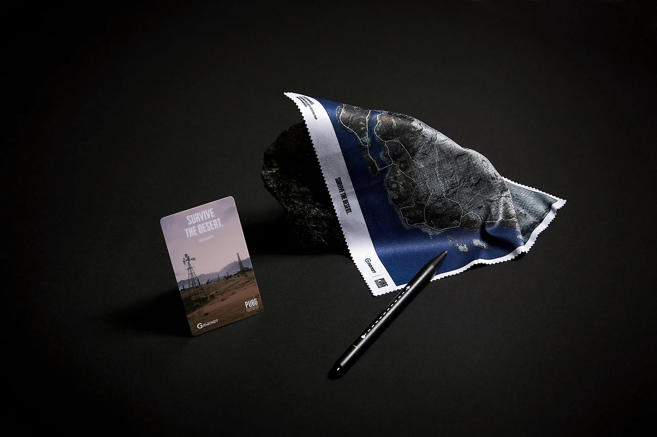 추가로 배틀그라운드 밴드와 스티커, 패션 마스크를 더해 품목을 구성했다. 실용성을 더하기 위해 맵은 액정클리너로 경로선은 볼펜으로 제작했다.