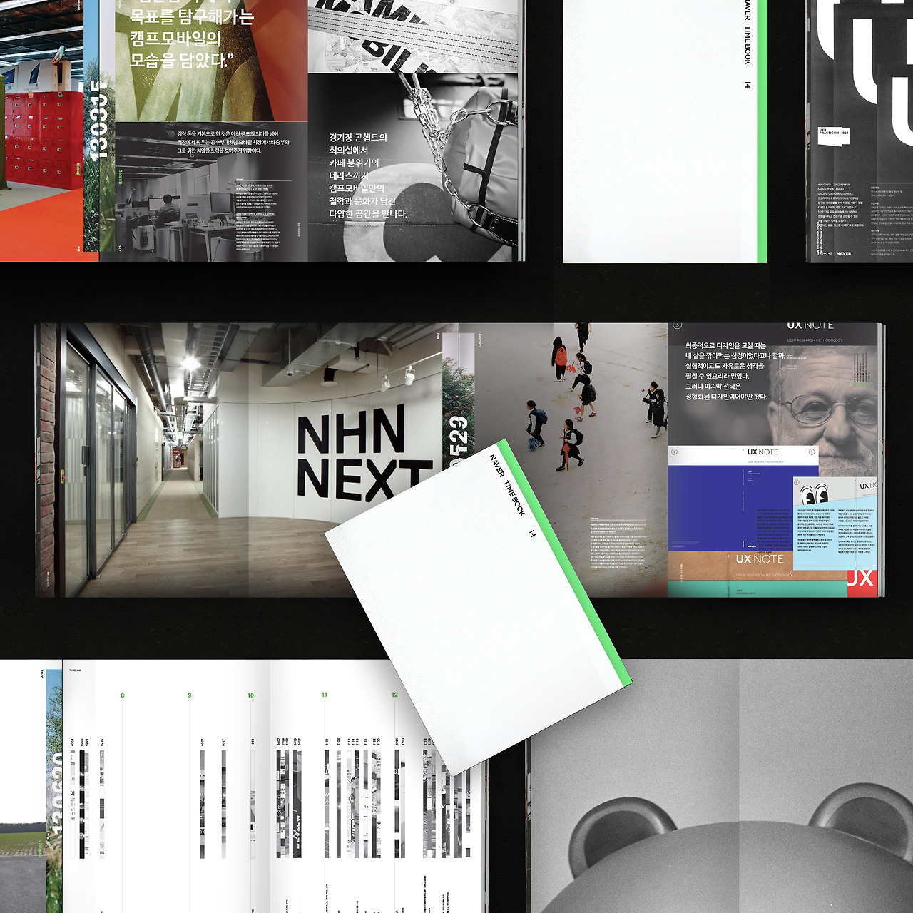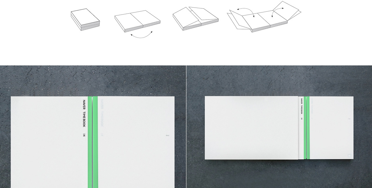 타임북은 1900년대 초반 미국 철도원이나 광부 등이 근무시간을 적었던 작은 공책을 가리킨다. 작업자들은 작업시간과 함께 그날 있었던 소소한 일들, 자신의 생각을 가볍게 기록하여 보관했다. <타임북 14>는 2013년 1월 1일부터 12월 31일까지 네이버에서 진행한 다양한 프로젝트를 모은 책이다. 단순히 결과물을 엮는 기존 연감과 달리 네이버 디자인 철학과 태도, 작업자의 고민과 흔적을 더해 스토리북으로 만들었다. 이 책은 단 500권만 소량 제작해 프로젝트를 진행한 디자이너들에게만 배포했다.