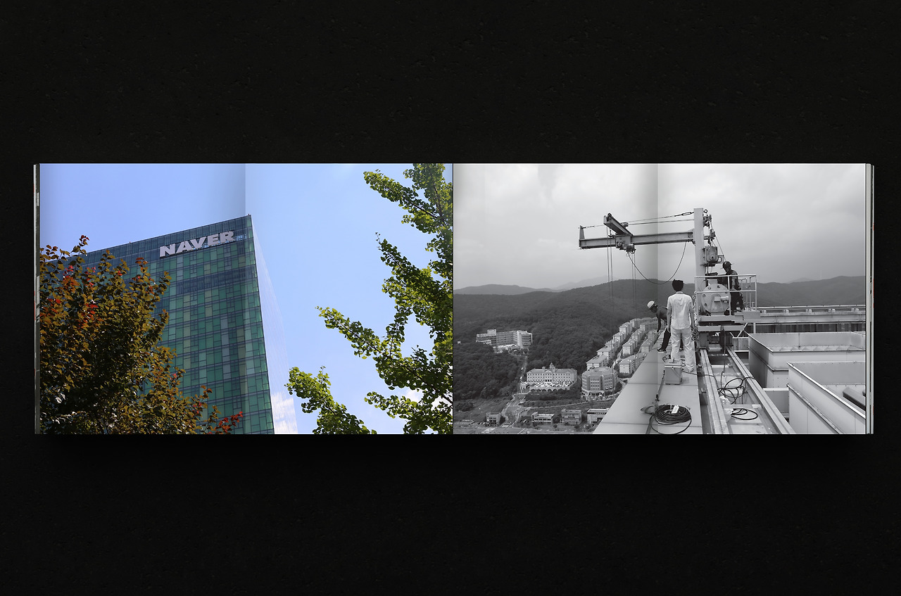 이 책 내지 디자인은 다소 두서없다. Work book은 너무 디자인을 안 한 것 같은 느낌이고 Story book은 오히려 너무 과한 느낌이다. 그리드, 마진, 단 등의 디자인 규칙들을 가급적 각각 책에 맞는 방식으로 없애려고 노력했다. 전체를 한 편의 다큐멘터리라고 생각하고 한컷 한컷을 전체 흐름에 맞게 강약과 위계를 만든 것이 전부이다. 책을 읽는다는 느낌보다는 ’영상을 본다’라는 개념으로 디자인했다.