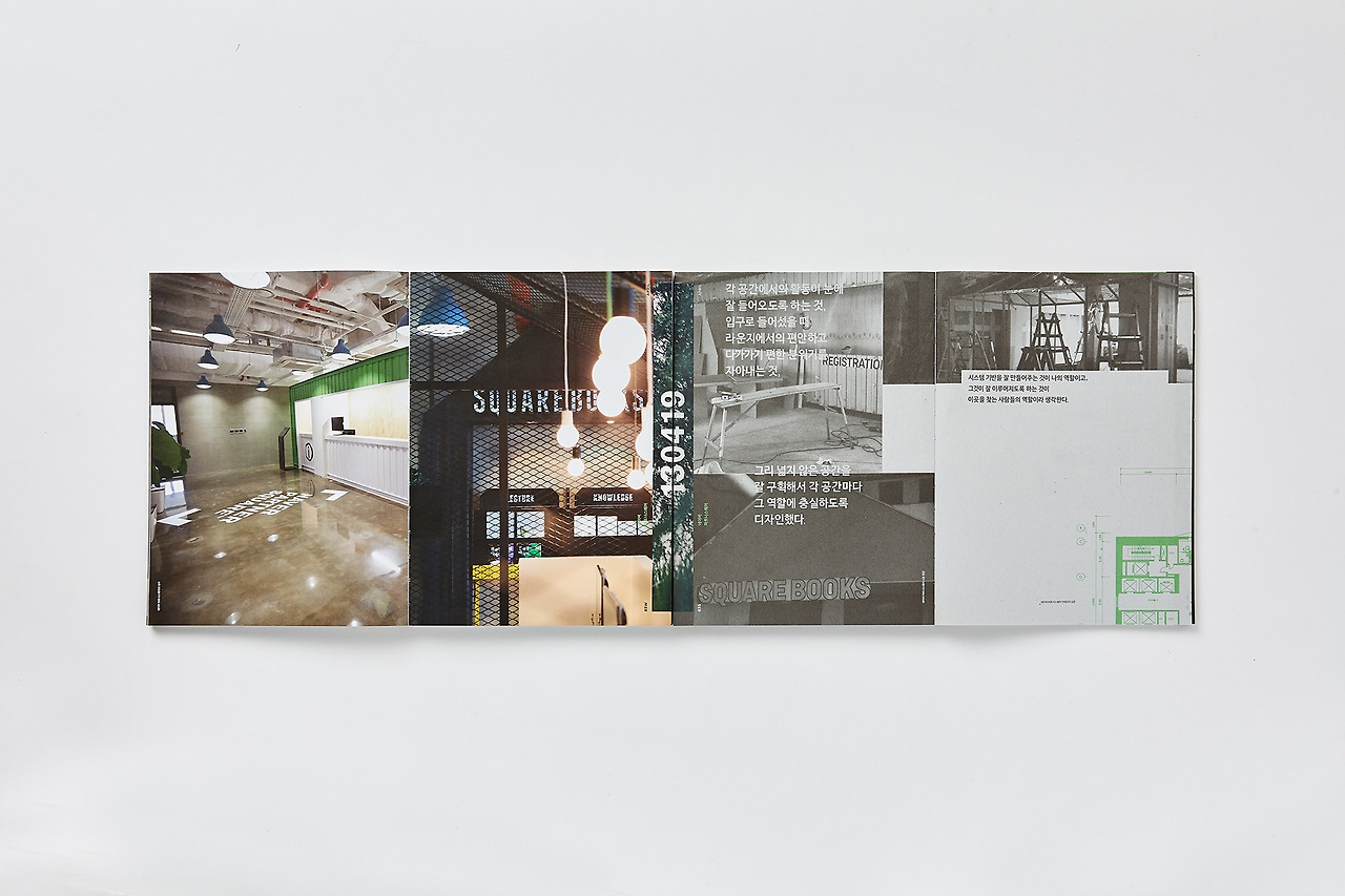 Work book은 최대한 인공적으로 가공된 느낌의 이미지를 담았다. Story book은 Work book과 완전히 반대 콘셉트로, 정리되지 않은 생각과 이미지들을 극대화하고 싶었다. 인터뷰 내용이 여과 없이 그대로 들어가기도 하고, 작업자의 생각을 짧은 문구로 넣기도 했다. 이미지는 최대한 raw 하고 natural 하게 사용했다. 내지 디자인은 폰트를 지정한 것 말고는 그리드, 여백, 이미지 크기, 폰트 크기 등에 별도 규칙을 두지 않았다. 최대한 날것의 느낌을 그대로 살리고 싶었다. 종이 역시 Work book은 깔끔하게 코팅이 된 젠틀페이스를 Story book은 러프한 신문용지를 사용했다. 또한 Story book에 사용한 사진은 디지털카메라로 촬영했고 Story book에 사용한 이미지는 필름 카메라를 사용해 두 책의 대비를 더욱 강하게 만들었다.
