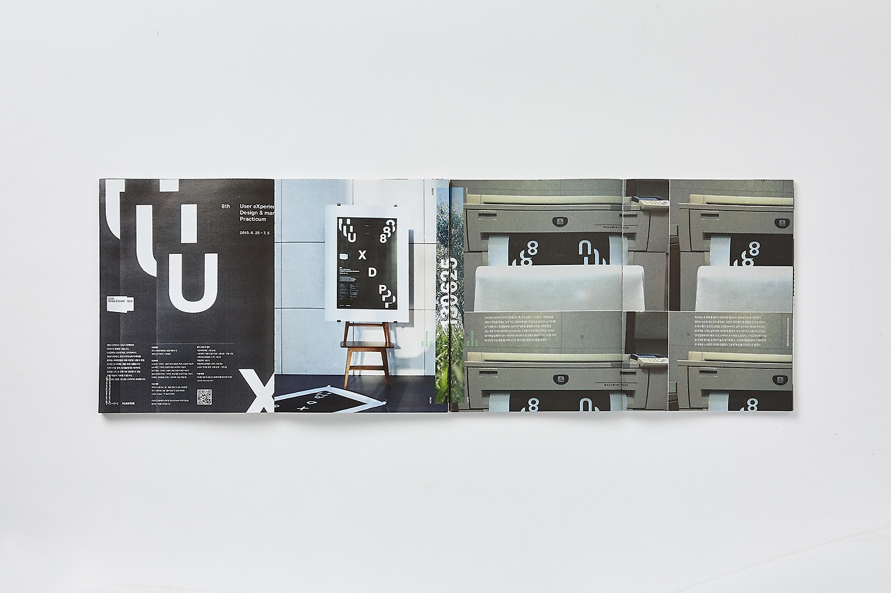 기획 이후 디자인된 책이 아니라 자료의 취합 이후 기획된 책이라 책의 전체 콘셉과 흐름을 이끌고 가는 이미지가 필요했다. 나는 프로젝트와 크게 상관없는 재미있고 엉뚱한 이미지들을 흐름 안에 중간중간 넣었다. 논리적이지 않고 극히 주관적인 해석의 이미지들이라 각자가 상상력을 발휘해 의미를 해석해야 한다. 같은 의미로 해석을 한 사람들은 공감을 할 테고, 다른 의미로 해석을 한 사람들도 좋다. 어? 이게 뭐야 하는 사람들이 있어도 괜찮겠다고 생각했다. 어차피 모두를 위한 책은 아니니까. 예를 들면 ‘UXDP포스터는 레이어가 겹치는 콘셉트니까 여러 송이가 겹쳐있는 들꽃의 사진을 사용하자’식의 의식의 흐름이었다. 콘셉트를 표기식 작가님께 설명했고 작가님은 흔쾌히 믿고 맡길 테니 알아서 사용하라고 그동안 촬영했던 데이터가 담긴 외장하드를 통째로 주셨다. 인공적으로 의도한 사진과 인공적이지 않게 의도한 이미지가 충돌하는 느낌을 담고 싶었다.