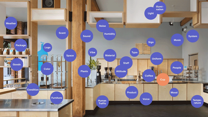 메뉴판과 관계, 인테리어 자재와 관계, 커피 맛/향과 관계, 음악, 온도, 무드, 직원들의 태도, 조명, 같은 공간 안에 있는 손님들, 소음, 심지어 그날의 날씨나 그 순간의 내 기분 등을 포함해 여러 가지 요소와 관계를 맺습니다. 이런 맥락에서 생각하면 소품 하나를 중심으로 플로우 차트를 만들거나 페이지네이션을 하는 것이 가능해집니다. 그 맥락 안에서 우리는 커피를 구매하고, 마시고 그 모든 설계된 총체적인 경험을 소비합니다.