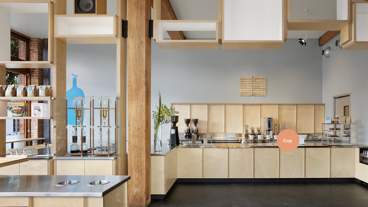아래 '블루보틀' 카페에 어울리는 컵을 하나 준비해야 한다면 우리는 어떤 컵을 골라야 할까요? 유명한 브랜드의 컵? 혹은 좋은 재질로 만들어진 컵? 사용성이 좋은? 유명한 작가가 만든 컵? 공간 경험이라는 큰 맥락 안에서 이 컵은 여러 가지 요소들과 관계를 맺습니다.