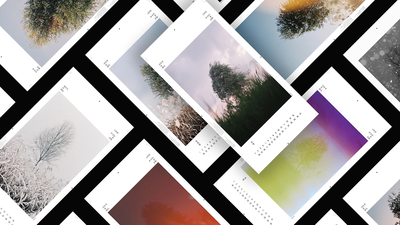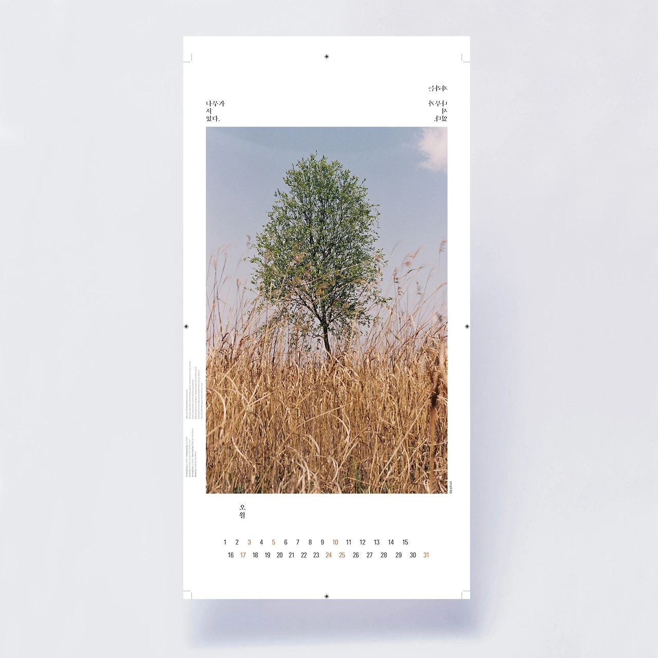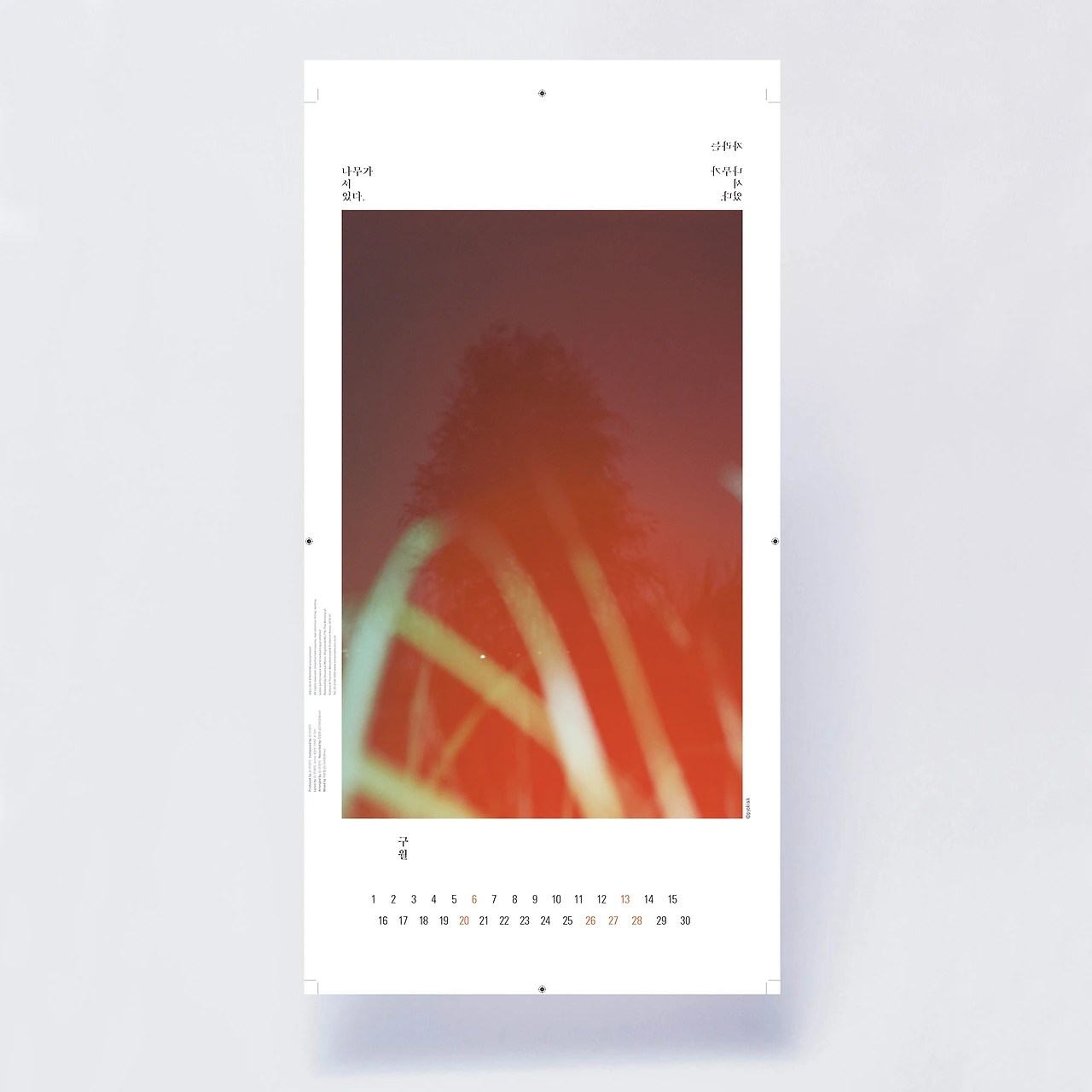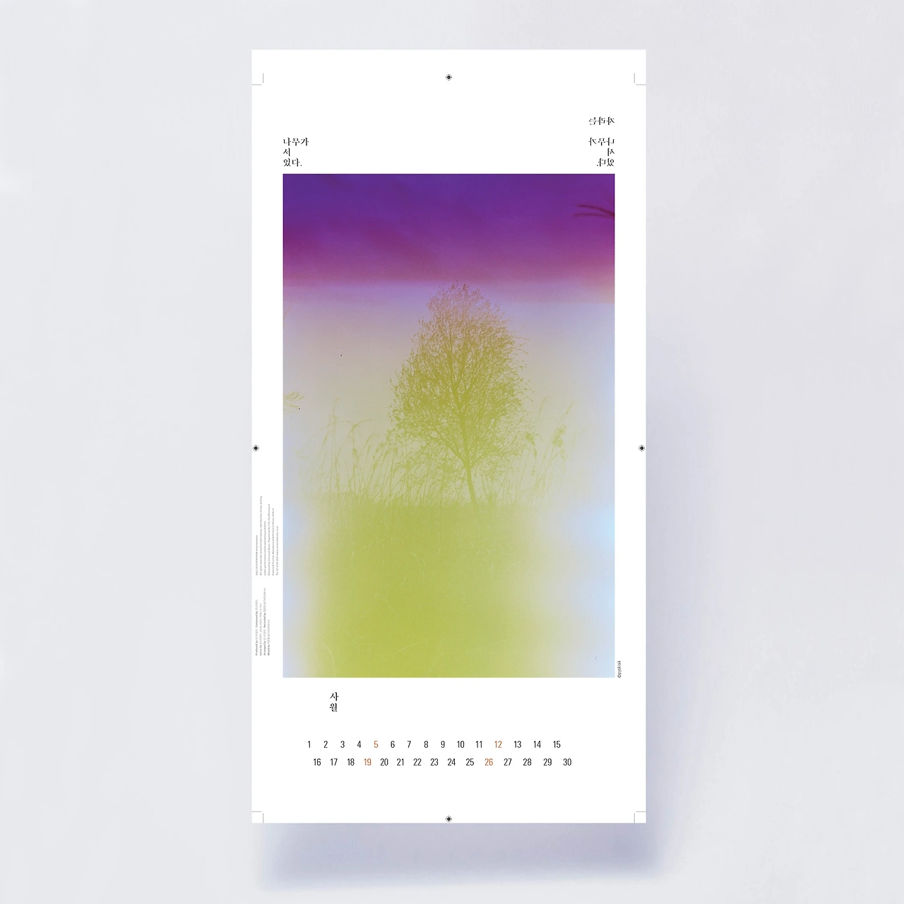 프로젝트를 잘 마치고 얼마 지나, 찍어둔 나무 사진으로 달력을 만드려고 하는데 내가 디자인을 도와주었으면 좋겠다 하여 기꺼이 하겠다했다. 시간의 순간을 담은 사진이라 생각했기 때문에 달력이라는 것이 묘하게 잘 어울린다고 생각했다.
