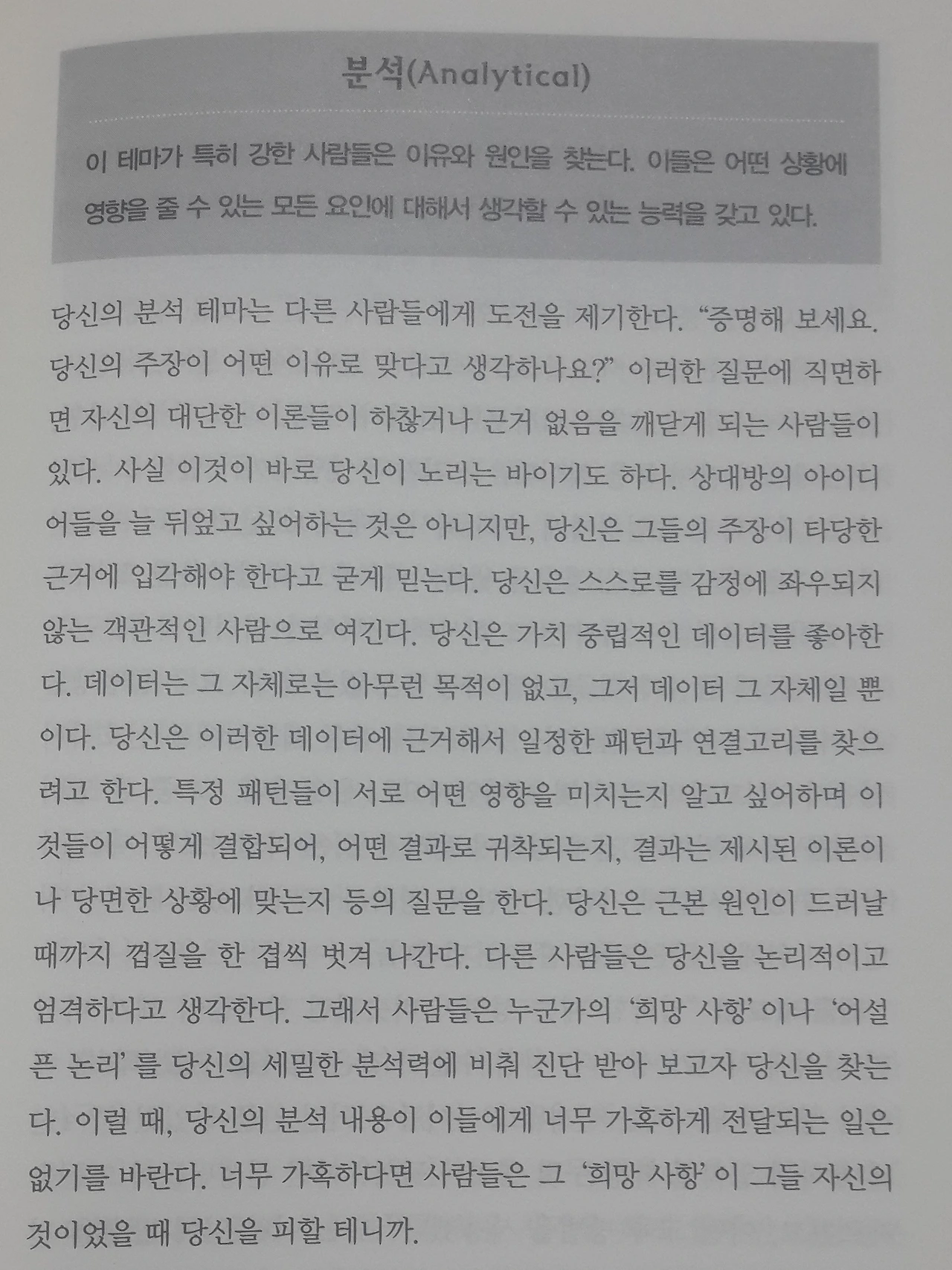 '자기발견 프로그램' 스트랭스파인더 를 통해 자신의 재능과 강점을 발견한다는 내용의 책이다. 이 책을 읽으면서 과연 "데이터분석가" 분들은 어떤 성격을 가지고 계신 분이 잘하실까 궁금해졌다. 비록 실제 그 분들에게 실행해보지는 못했지만 읽으면서 "이러한 성격을 가지신 분이 잘하실 것 같다" 라는 것을 정리해보았다.