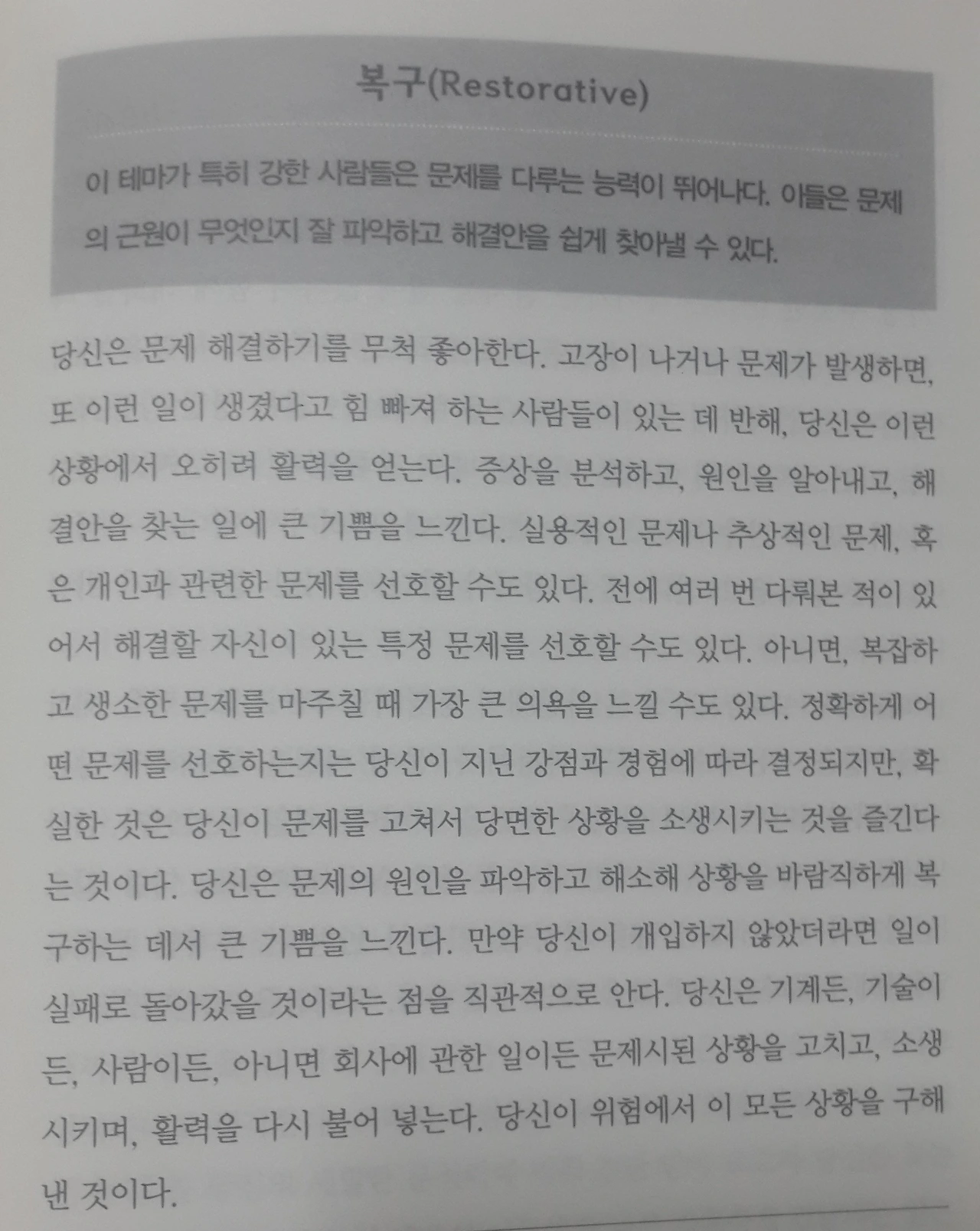 1. 문제를 다루는 능력이 뛰어나다. 2. 문제의 근원이 무엇인지 잘 파악하고 해결안을 쉽게 찾아낼 수 있다.