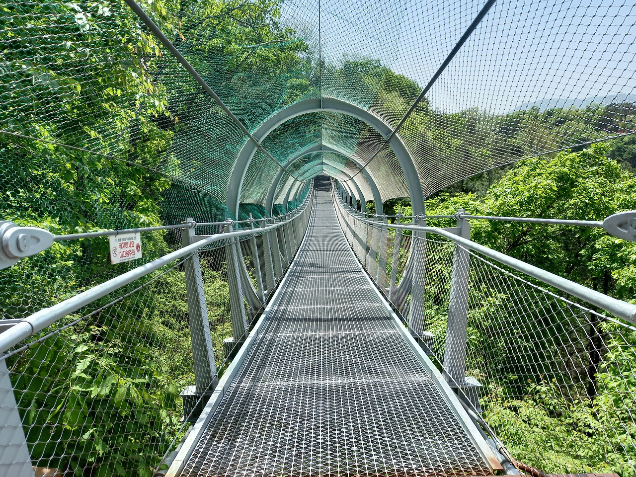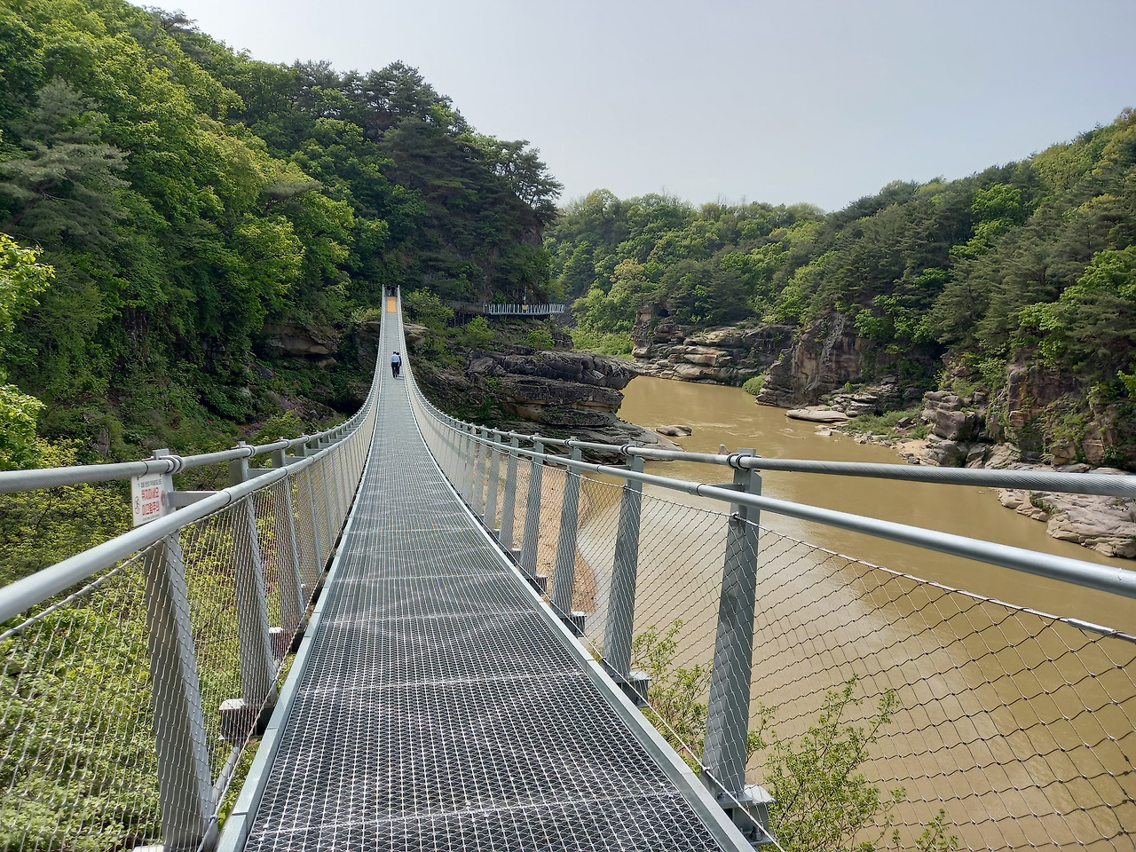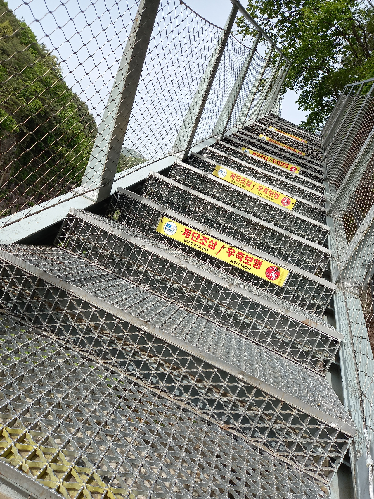 얼마를 지나니 평탄하던 길이 오르막 내리막 계단으로 바뀌고 수많은 출렁다리가 길게 놓여 있었다. 이 시설을 설치하기 위해 꽤 많은 예산이 투입되었겠다는 생각이 들었다. 드르니 매표소가 있는 정상까지 올라가는 길은 그야말로 '천국의 계단'이었다. 가쁜 숨을 몰아쉬며 올라가 멋진 풍경을 잠시 감상하고는 다시 순담매표소로 돌아가야 했다. 드르니까지 가는 길은 그다지 힘들지 않았는데 다시 돌아오는 길은 배도 고프고 지치고 힘들었다. 그렇게 왕복 7.2km를 3시간여 동안 걸어서 완주하였다.