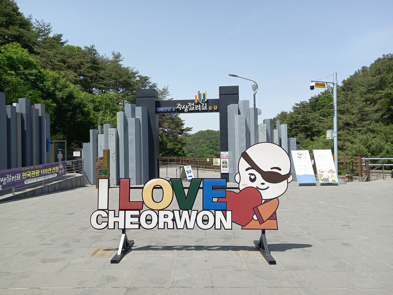 순담매표소에 도착하여 1인당 10,000원(65세 이상은 50% 할인)의 입장권을 끊으니 7,000원짜리 철원상품권을 주며 철원 어디서나 가맹점에서는 사용이 가능하다고 한다. 이런 건 참 잘하는 행정인 것 같다. 바로 앞에 있는 상점에서 1,000원짜리 상품권을 내고 생수 한 병을 구입하여 들고 입장하였다. 안내도를 살펴보니 이곳 순담에서 드르니라는 곳까지는 거리가 3.6km이고 1시간 반 정도 소요되는데 중간중간에 화장실과 쉼터가 있다고 나와있었다.