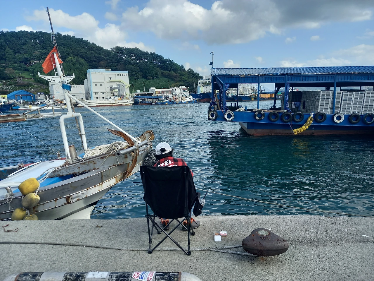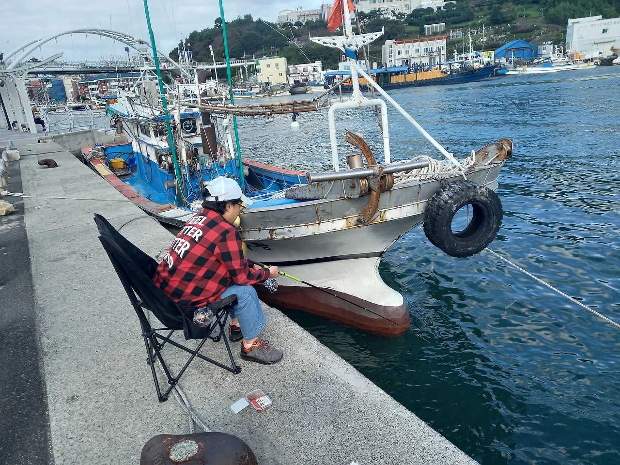 숙소에 짐을 풀고 잠시 휴식을 취하다 5시 반쯤 나와서 "태풍관"이라는 해산물 맛집에서 저녁식사를 한 후 바로 낚시 포인트로 갔다. 역시 작년과 마찬가지로 한적하고 발판이 좋아서 낚시하기엔 더할 나위 없이 좋은 환경이었다. 더군다나 바로 길건너에 깨끗한 공중화장실이 있고 깔끔한 카페도 있어서 언제나 이용할 수 있었다.
