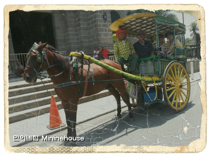 필리핀에서 가장 오래된 성당이라는 마닐라 대성당 앞에 가니 마차를 타라고 호객행위를 한다. 먼저 성당 안을 둘러보고 나오니 멋진 카우보이 복장의 나이 지긋한 피노이(pinoy) 아저씨가 한국말을 섞어가며 이런저런 설명을 한다. 얼마 전에 마닐라투어를 왔던 한국 학생들이 이곳에서 마차를 100페소에 흥정을 하고 탔는데 돌아와서는 100달러라고 했다며 우기는 바람에 황당했다는 얘기를 들은 적이 있기에 가격표를 보며 몇 번에 걸쳐 확인하고 또 확인하였다. 마차 1대에 3인 탑승 기준으로 30분 코스가 350페소, 1시간 코스가 700페소인데 인트라무로스 안에 있는 유명 관광포인트를 돌면서 설명을 곁들이는데 1시간 코스는 중간중간에 내려서 사진도 찍어주고 가이드를 해준다고 한다. 처음 온 곳이고 지도도 없기에 700페소짜리를 선택하였다.