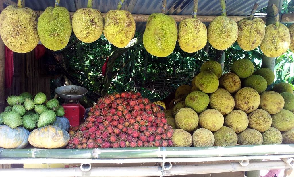 역시 이곳도 마닐라 못지않게 시내 중심지는 트래픽이 엄청 심하였다. 도로 곳곳이 꽉 막혀있고 주행 제한속도가 시속 40킬로이다. 겨우 겨우 빠져나와서 한적한 시골길을 한참 달리니 산으로 통하는 오르막길이 나타난다. 가는 길에 길가 노점에 이상한 과일이 있어서 물어보니 마랑(Marang)이라는 과일인데 생김새와 내용물이 잭프릇과 비슷하다고 하여 Small Jack Fruit이라고 부른단다. 1kg에 20페소(약 500원)라고 하니 진짜 싸다. 우선 1개를 골라 껍질을 까고 내용물을 먹어보니 달콤하면서도 상큼한 맛이 독특하다.