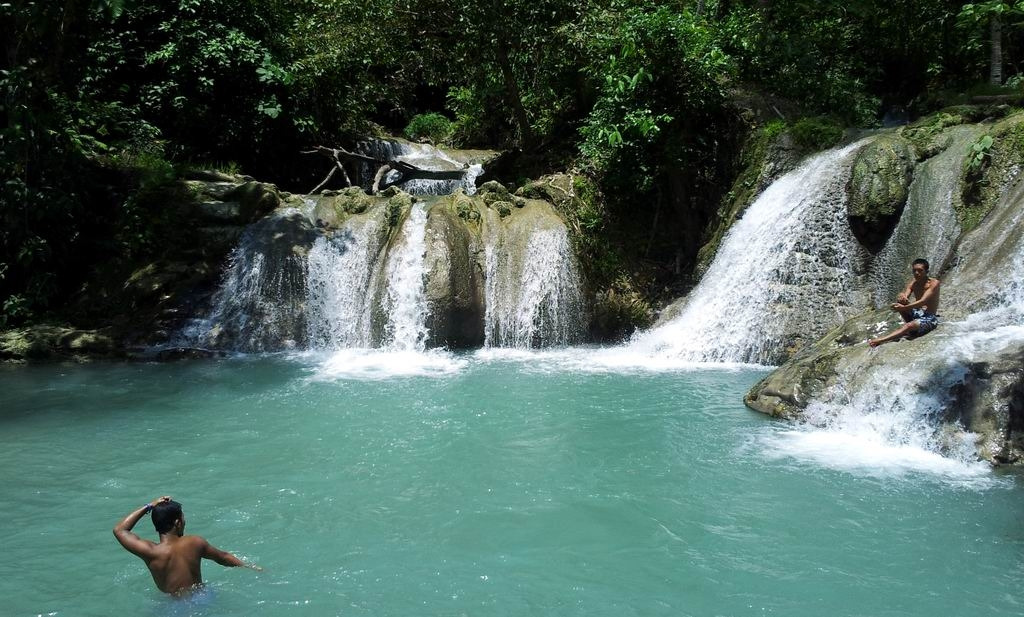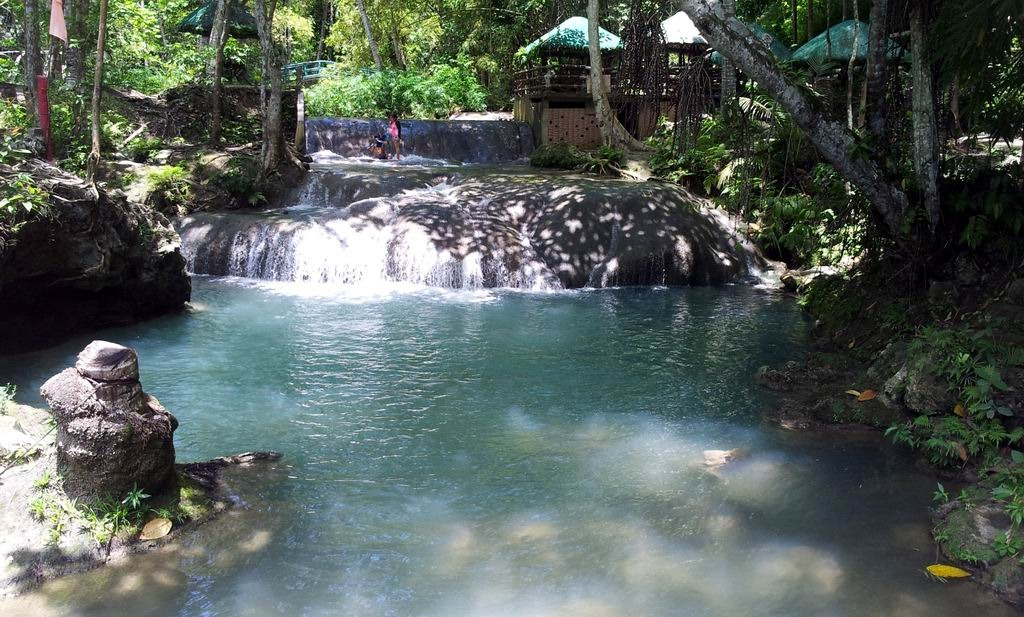 오빠 달려~~~^^^ 덩치가 작지 않은 3명이 오토바이 뒤에 꼭 붙어 타고 꼬불꼬불 해변길을 달려가는 장면은 얼마나 가관이었을까? ㅋㅋㅋ 꼬리뼈가 빠지는 고통을 참고 도착한 폭포 입구에서 입장료 15페소(1인당 5페소)를 지불하고, 또 들어가서 폭포입장료 120페소(1인당 40페소)를 지불하였다. 계단으로 된 비탈길을 한참 걸어내려가니 시원한 물소리가 들리기 시작한다. 잠시 후 왼쪽으로 펼쳐진 장관은 마치 무릉도원 같았다. 규모가 그리 크진 않지만 크고 작은 폭포와 노천 자연풀장이 숲 속 군데군데 놓여 있었다. 땀을 삐질삐질 흘리며 사진을 연신 찍어대고 오르락내리락하니 금세 지쳐버린다. 한 바퀴 둘러보고 나와서 입구 노점에서 콜라, 사이다, 로얄을 사서 마시니 속이 뻥 뚫린다.