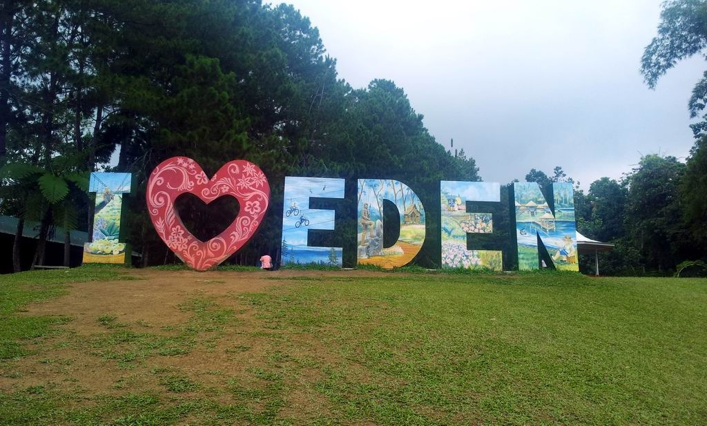 생각보다 빨리 약 5분 정도 지나자 기사가 다시 택시에 타란다. 얼마 안 남았으니 천천히 올라가서 우리를 내려놓고 다시 점검하겠단다. 정말로 약 2분 정도 더 올라가니 에덴공원 입구가 보였다. 안내 데스크에 가서 입장료와 셔틀투어(Shuttle Tour)를 신청하였더니 점심 스낵을 포함하여 1인당 340페소 총 1,020페소를 지불하였다. 탑승시간까지 시간이 남아 주변을 돌며 사진을 찍었다. 에덴동산 테마답게 아기자기하게 잘 꾸며놓아 사진이 예쁘게 잘 나왔다. 11시에 셔틀버스를 타고 공원을 한 바퀴 돌아보는데 그 규모가 실로 엄청나서 깜짝 놀랐다. 산을 오르고 내려가며 가이드의 설명을 듣고 포인트에서는 사진도 찍고 하며 약 30분을 돌아보고 점심으로 파스타와 참치스테이크 등 간단한 스낵을 먹었다.