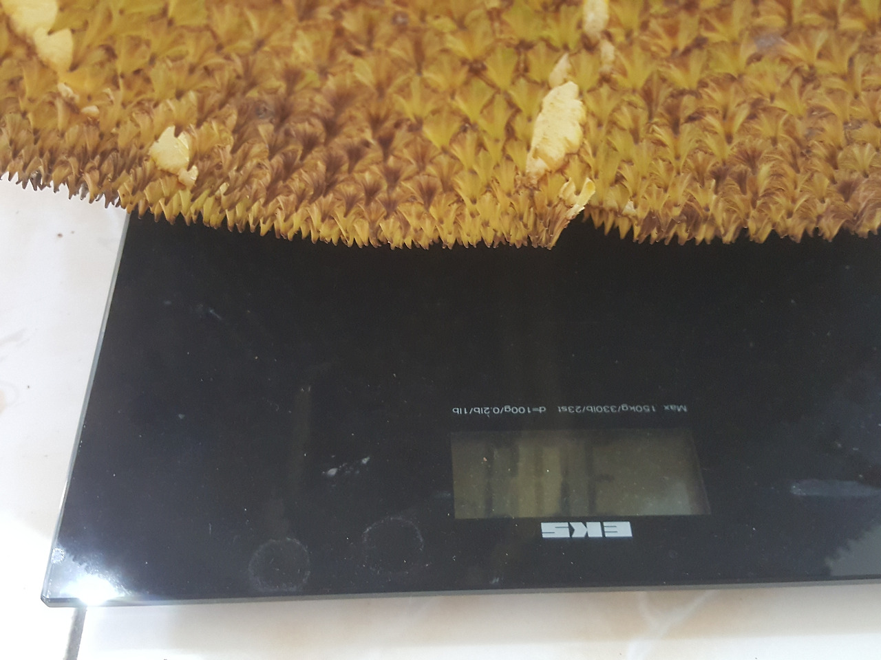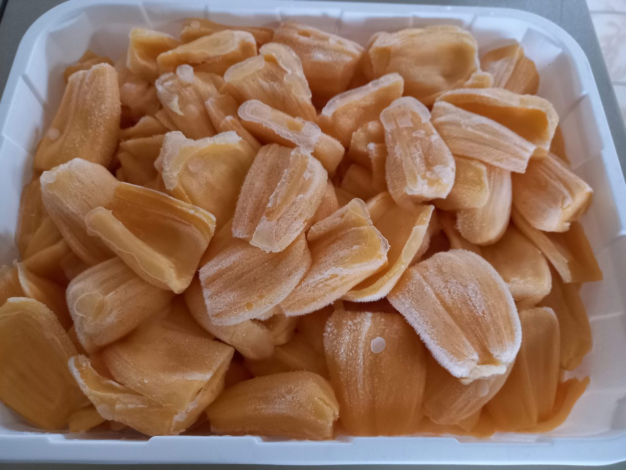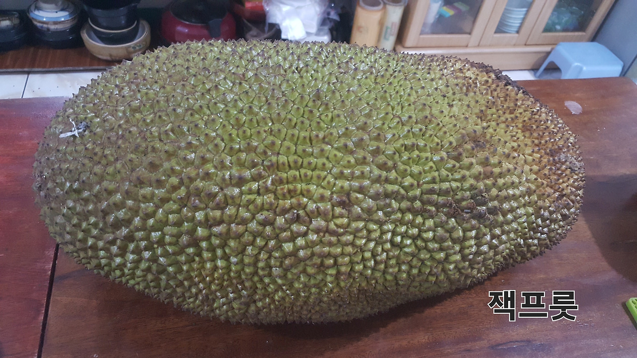 현재 세계 최고 무게의 기록을 가진 잭프룻은 45kg이라고 하는데 우리 집에서 수확한 30킬로 나가는 잭프룻 한 마리를 잡았더니 맛있는 과육이 플라스틱 통으로 대여섯 개 나왔다. 냉장고에 넣어두었다가 손님들이 오시면 식사 후 디저트로 내어드려야겠다.
