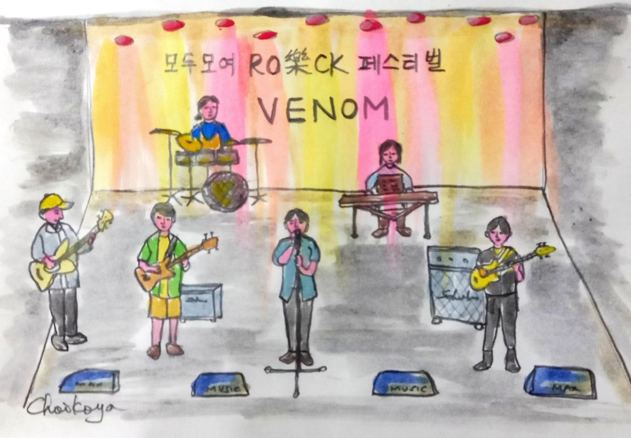 지난 일요일 오후에 아들이 메인보컬로 있는 직장인 밴드 '베놈(VENOM)'의 공연을 보러 갔다. 춘천시 서면의 애니메이션 박물관에 있는 실내공연장에서 열렸는데 아담한 사이즈의 객석에 사람들이 제법 많이 모여 앉아 공연을 즐기고 있었다. 춘천시에서 주관하는 행사인 만큼 여러 밴드 팀들이 서로 자신들의 끼를 뽐내며 열정적인 무대를 만들어가는데 아들의 밴드 순서가 되자 가슴이 설레기 시작했다. 화려한 조명 속에 열창을 하는 아들의 모습을 보니 대단히 멋져 보였다.