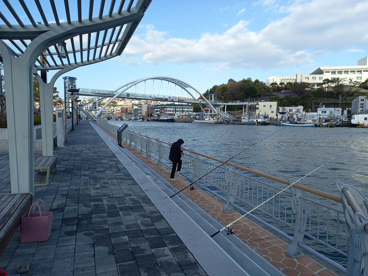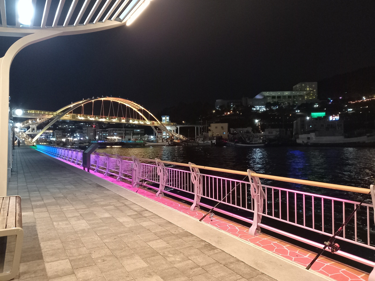 통영에서는 가마솥 굴밥 맛집에서 저녁을 맛있게 먹고 숙소에 체크인한 후 밤거리를 산책하러 나왔는데 통영해안로를 따라 잘 조성된 데크가 딱 낚시하기 좋아 보였다. 근데 주위를 아무리 둘러봐도 낚시하는 사람이 한 명도 보이지 않아 혹시 여기가 낚시 금지구역인가 싶어 지나가는 행인을 붙잡고 물어보니 요즘 날씨가 추워서 낚시하는 사람이 없다고 하였다.
