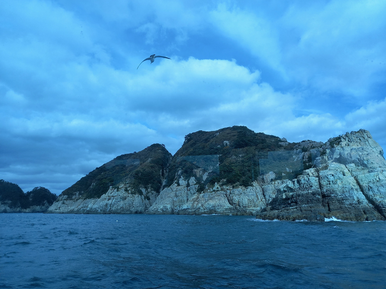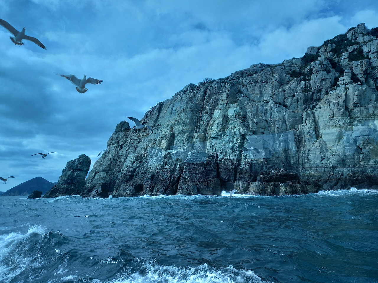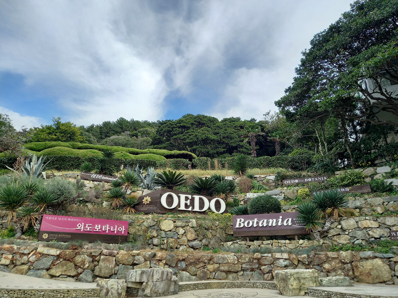 둘째 날은 배말칼국수와 톳김밥으로 아침식사를 한 후 장승포항에서 외도행 유람선을 탔다. 아침부터 바람이 많이 불어 파도가 일으킨 너울에 선체가 이리저리 기우뚱거려 멀미가 걱정되었다. 예전에 속초 선상바다낚시에서 겪었던 악몽이 떠올라 무척 걱정했는데 다행히도 멀쩡히 살아남았다. 약 30분 정도 파도를 헤치고 달려서 바다의 금강산으로 알려져 있고 멋진 바위산으로 유명한 해금강을 돌아보고는 외도 보타니아로 향했다.