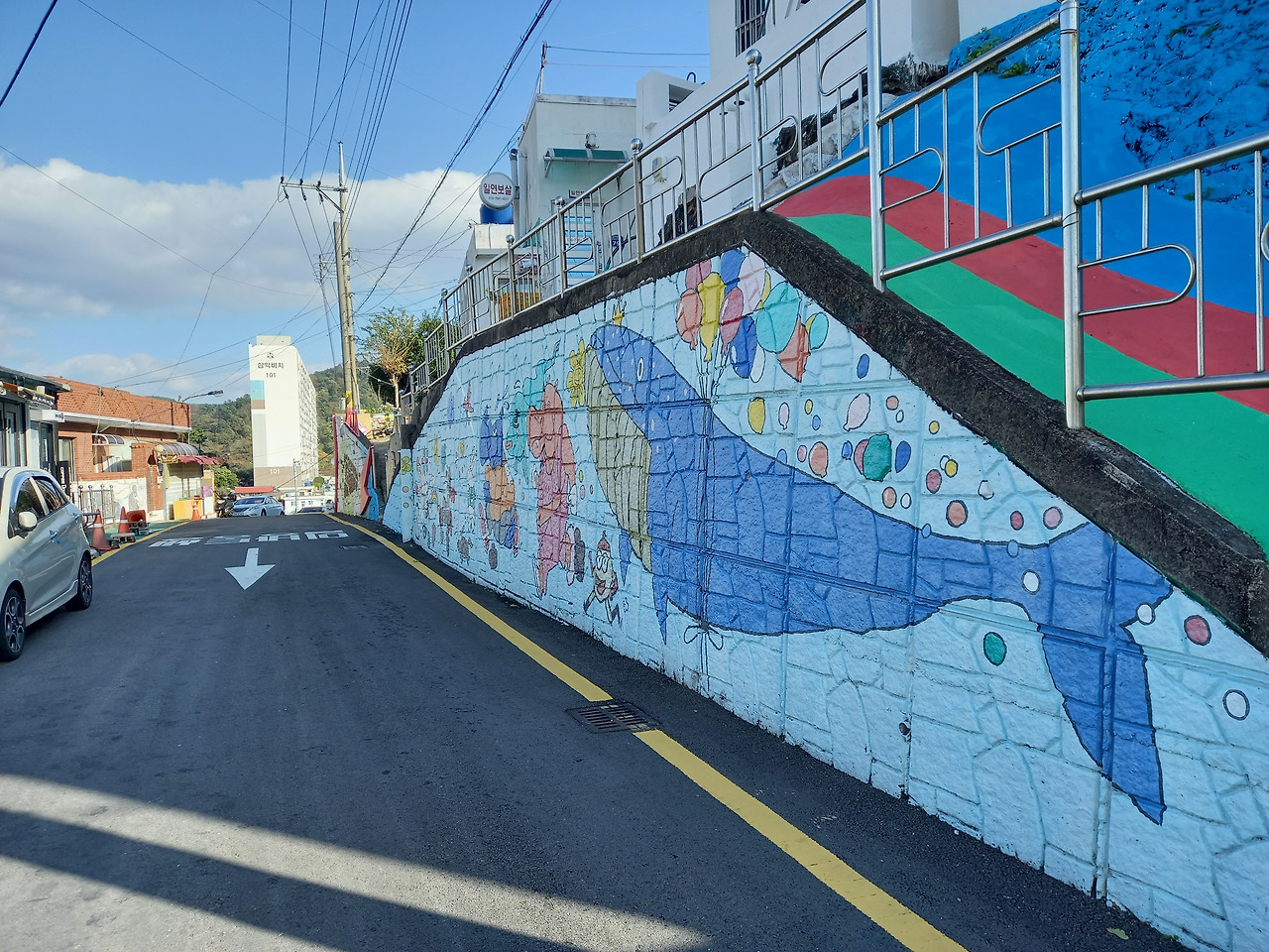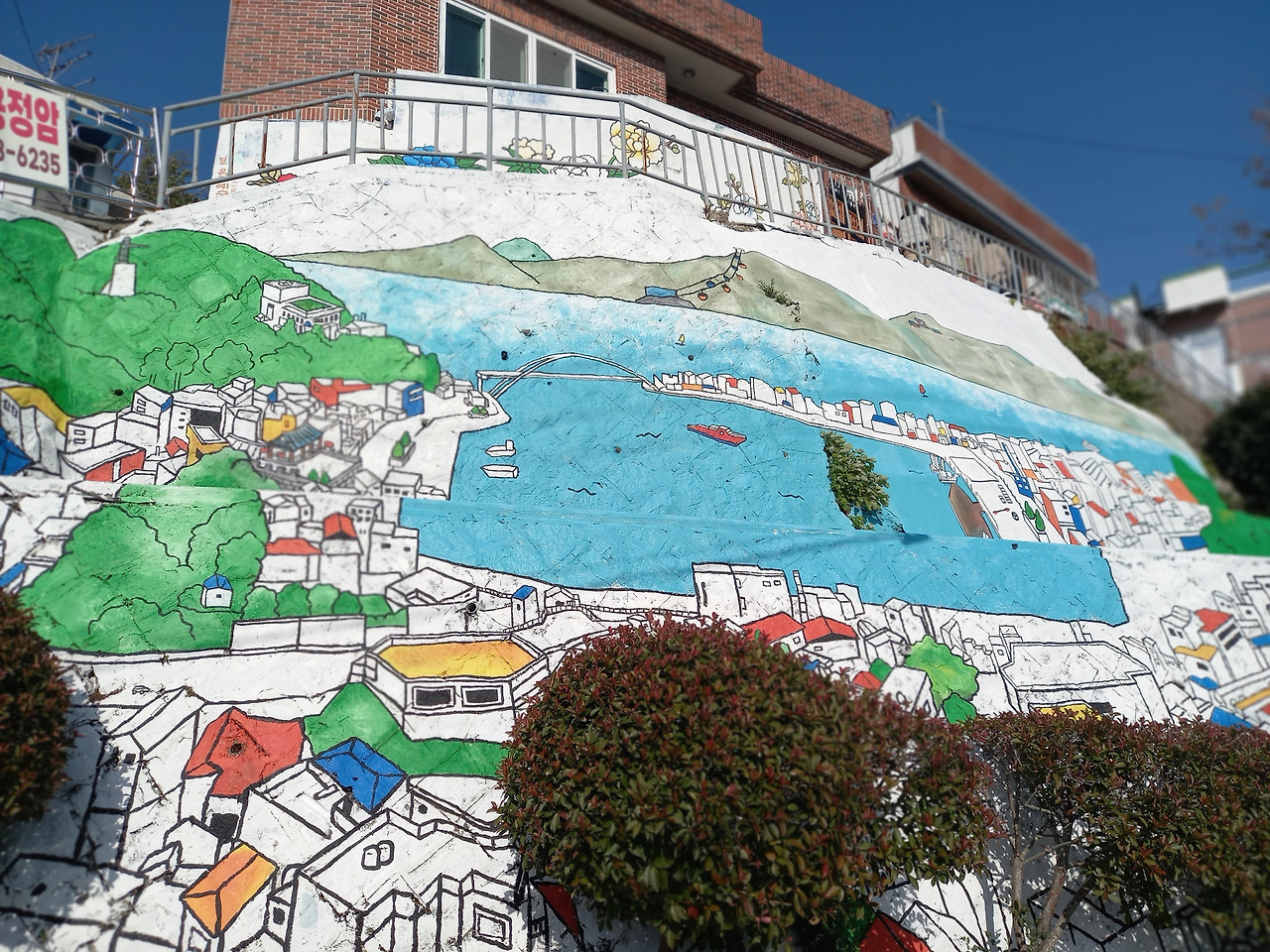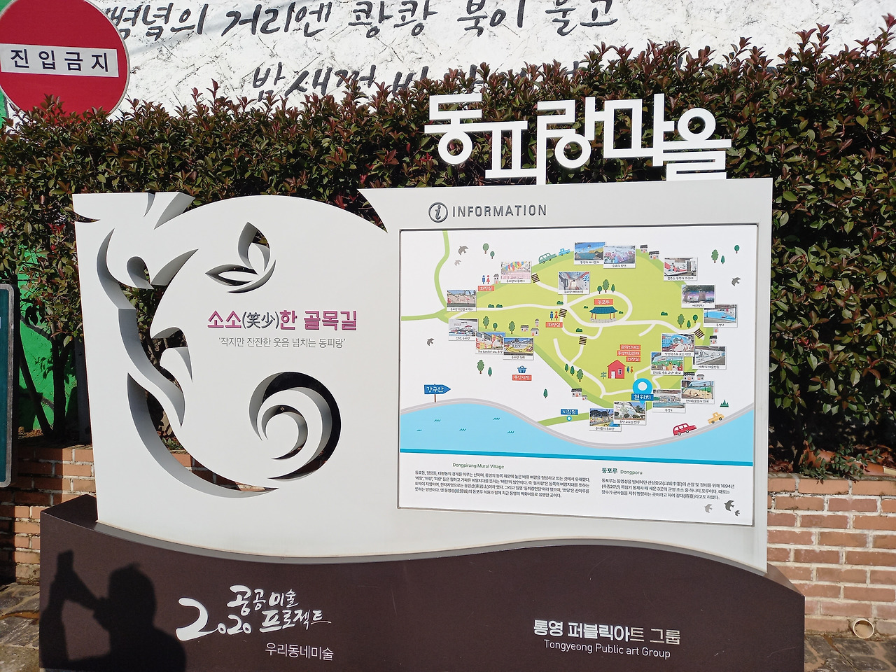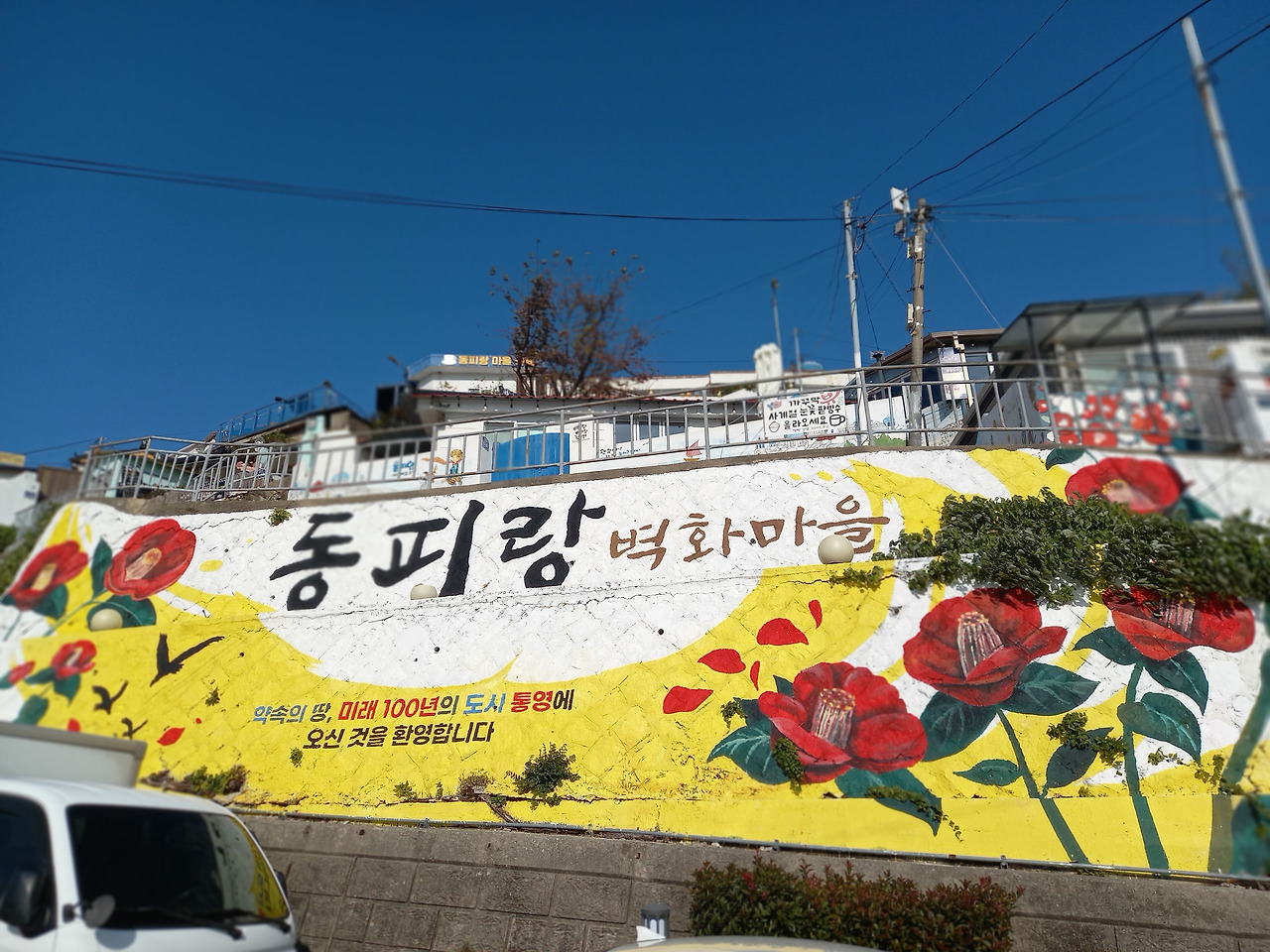 점심으로 멍게비빔밥을 맛있게 먹고는 다시 통영으로 돌아와 벽화거리로 유명한 '동피랑'이란 곳을 가보았다. 동피랑은 동쪽 비탈이란 뜻으로 마을 주민들이 직접 그린 벽화들이 거리마다 눈에 띄는데 그 정성과 실력들이 놀라웠다. 이는 통영시에서 공원 조성 목적으로 마을을 철거하려고 하자 공공미술을 통한 마을 살리기 사업으로 시작되었다고 하며, 지금은 마을 곳곳에 그려진 그림들과 강구안 바다풍경이 잘 어우러져 많은 사람들이 찾는 통영의 명소가 되었다고 한다.