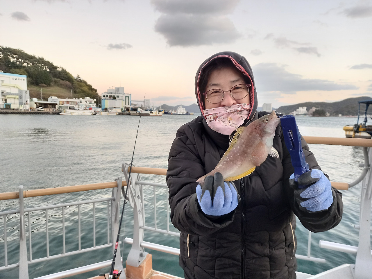 이후에는 특별한 스케줄이 없어서 어젯밤에 낚시를 했던 통영항 해안로에서 계속 낚시를 하였다. 바람이 너무 많이 불어서 눈•코 •입을 모두 막는 중무장을 하고 낚시를 하는데 지나가는 사람들이 우리 모습을 보면 미쳤다고 할 것 같았다. 그래도 간혹 이어지는 입질에 약 40cn의 커다란 양태 한 마리와 자리돔, 감성돔, 열기, 망둥어 등 다양한 어종의 물고기가 잡혀 올라왔다. 밤이 되면서 바람이 더 세게 불고 너무 추워져서 아쉬움을 남긴 채 숙소로 돌아왔다.