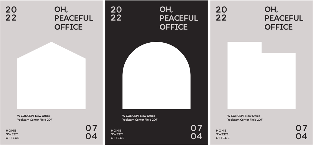 집과 회사, 일하고 있는 장소에 대한 경계가 흐려지는 시대입니다. 'HOME SWEET OFFICE'라는 캠페인 슬로건에는 변화에 대한 불안보단, 더 편하게 그리고 즐겁게 일을 할 수 있는 환경에 대한 기대감을 담았습니다. 집과 오피스를 표현한 단순화된 그래픽과 차분한 색감은 동료들이 마주하는 변화에 대한 긴장도를 낮출 수 있도록 작업 되었습니다.