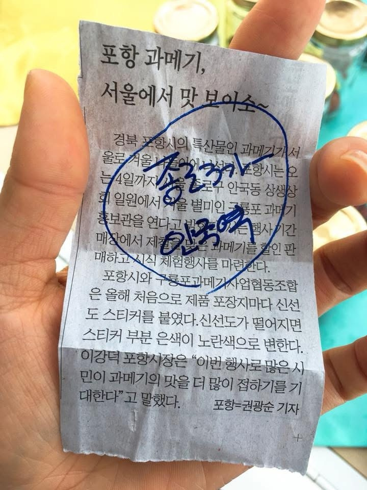 한 번은 서울 종로에 위치한 ‘상생상회’ 오프닝 행사를 맡게 된 적이 있다. 지방의 농특산물을 소개하는 이 공간에, 어떤 노부부가 신문 스크랩을 들고 찾아오셨다. 과메기를 맛보고 싶어 먼 길을 오셨다고 했다. 모두가 스마트폰으로 정보를 찾는 요즘, 신문을 오려 손에 쥔 모습은 무척 인상 깊었다. 기술과 시대가 변해도, 사람의 방식은 다양하다는 것을 다시금 느꼈다.
