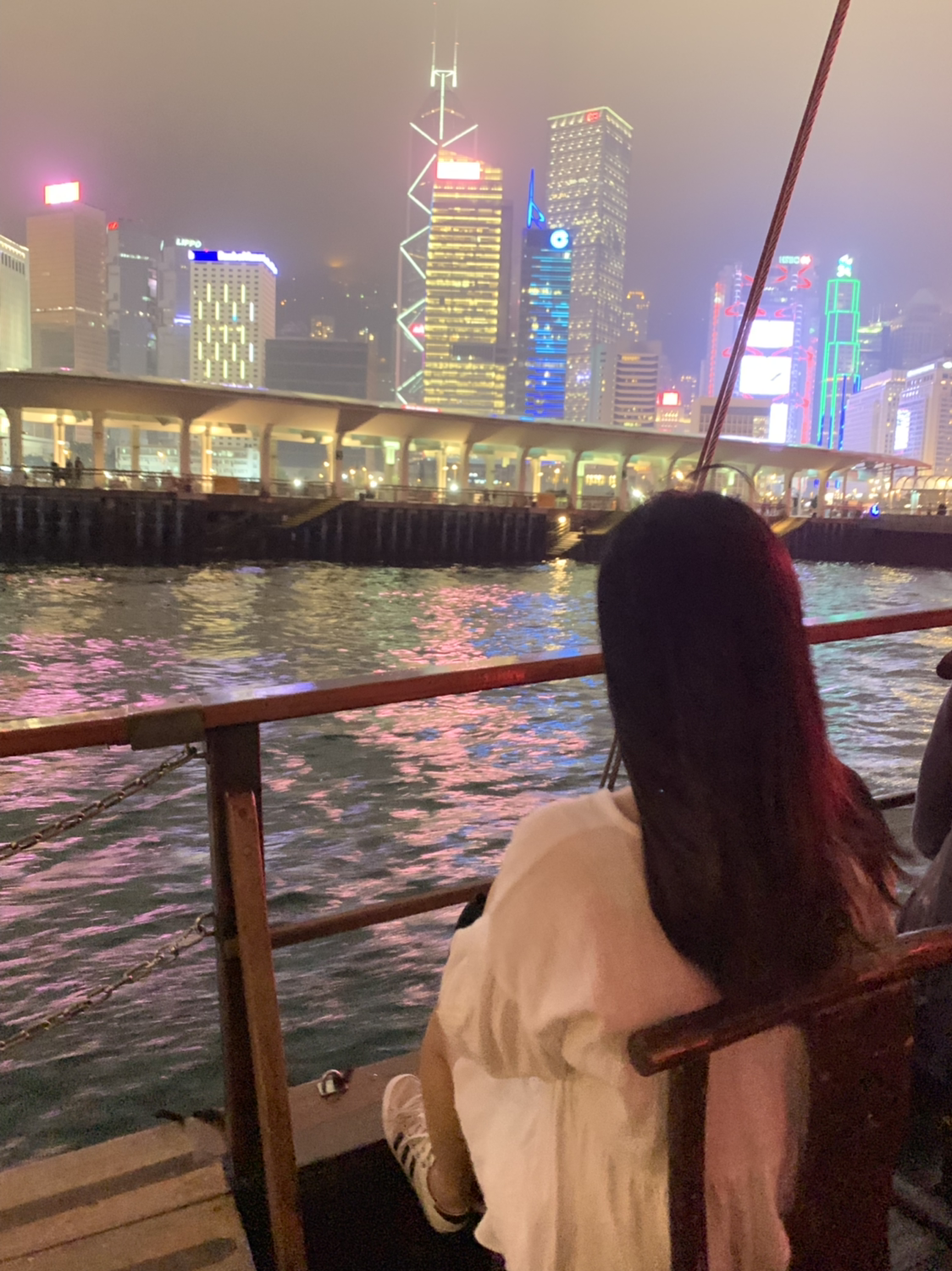 단연 으뜸 에피소드는 첫날밤 디너 크루즈 투어에서 있던 일입니다. 원래 웃긴 에피소드가 100만 가지 정도 되는 친구가 있어요. 그녀를 ‘마코친(마루코 친구)’이라고 부르겠습니다. 홍콩에서의 첫날 밤, 저희는 미리 예약해둔 디너 크루즈를 타러 갔습니다. 마코친은 크루즈에 타자마자 배 앞쪽에 놓인 의자에 앉았습니다. 나머지 애들은 조금 뒤쪽에 놓인 의자에 앉아 사진을 찍기 바빴죠.
