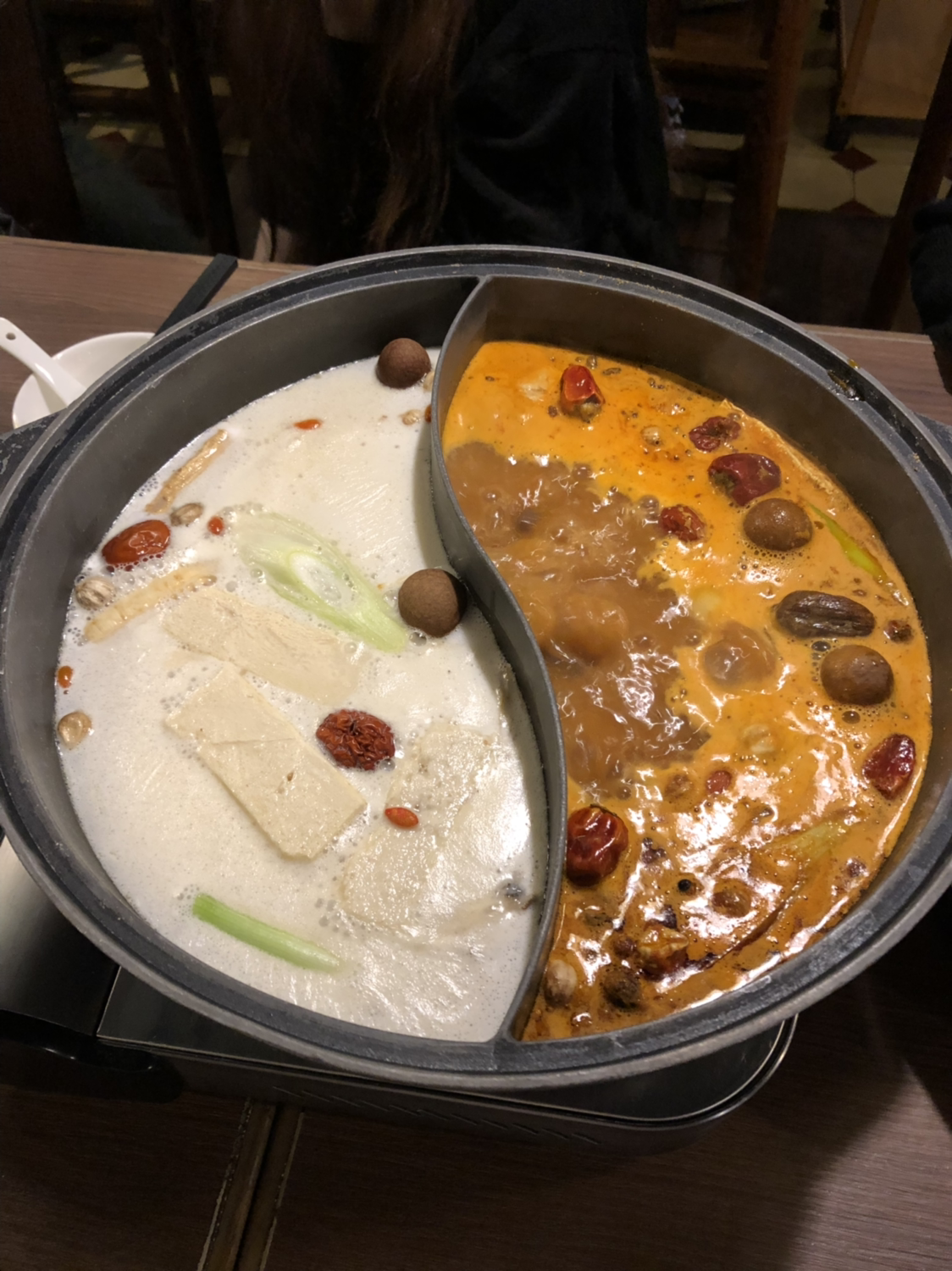 아래 사진은 홍콩 첫번째 훠궈 집이에요. 국물 안에 인삼과 대추, 이런 약재들이 한껏 들어가있답니다.