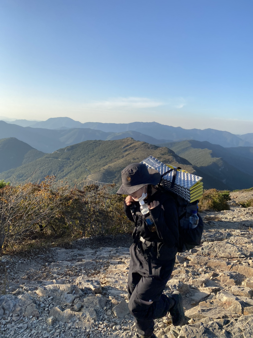 남편과 단 둘이 백패킹은 처음이었는데 생각보다 약골이었다. 걷는 건 나보다 잘 걷지만, 추위에 약해 밤새 두통에 시달려 잠 한숨 제대로 못 잤다고 했다.