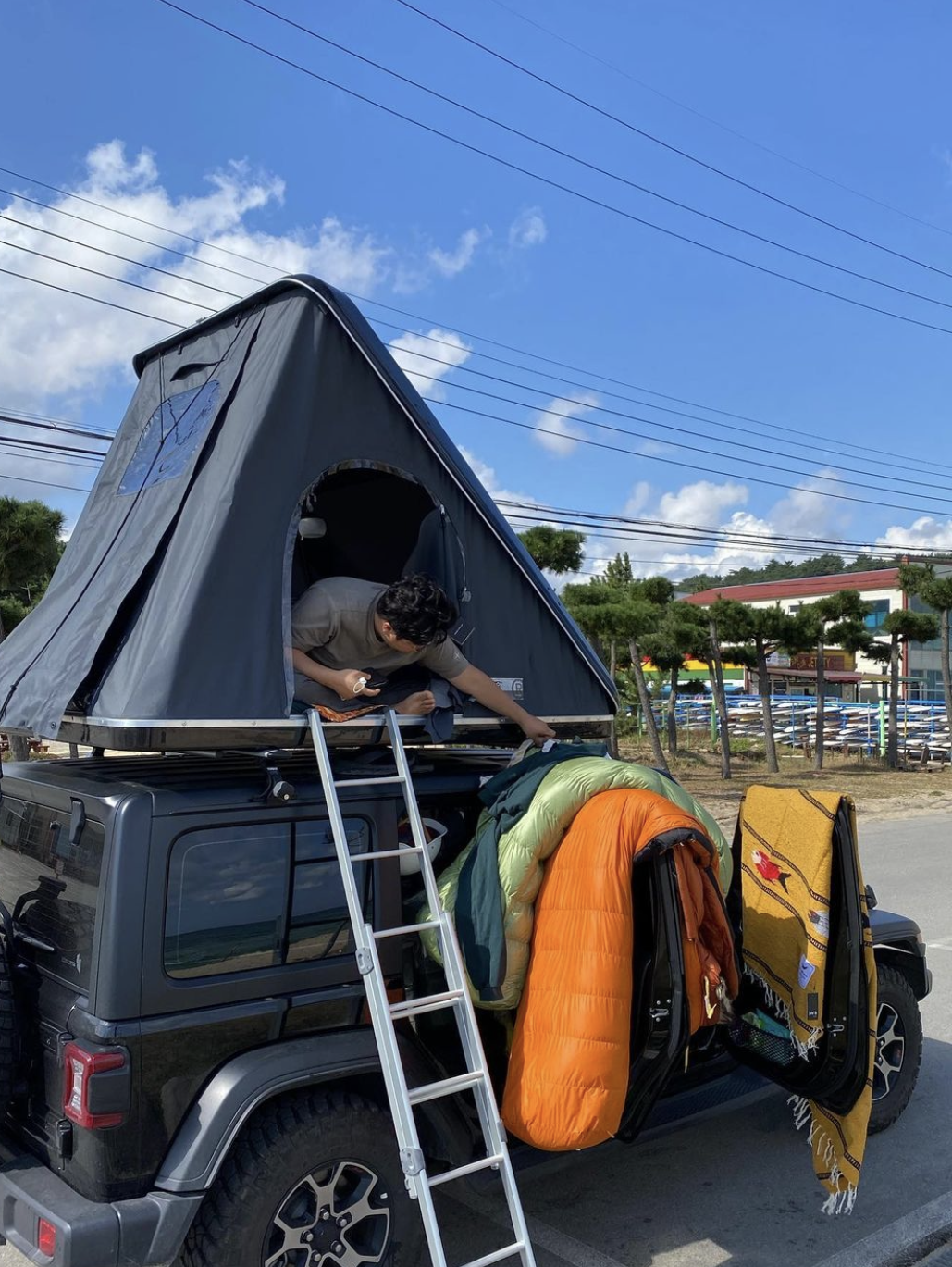 일단 비행기 삯으로 모아뒀던 돈으로 루프탑텐트를 샀다. 2주나 되는 일정이다 보니 이동이 잦을 테고, 그때마다 텐트를 접었다 폈다 하는 건 너무 힘들 것 같았다. 3면이 개방되어 안에서 바깥 뷰를 볼 수 있는 루프탑텐트였는데 정말 탁월한 선택이었다.