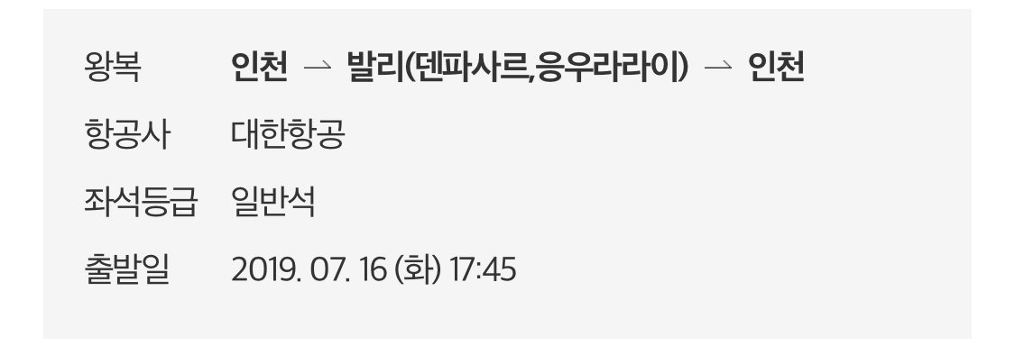 그런데 막상 퇴사가 결정되고 나니, 유럽보다 발리가 먼저 떠올랐다. 대륙도 아니고 국가도 아니고 단지 하나의 섬에만 가고 싶었다. "엄마 나 여행 갔다 와도… 올게." 엄마에게 허락과 통보 사이의 말을 했다. 알겠다는 답변을 듣자마자 발리행 왕복 티켓, 822,800원을 결제했다. 70만 원 정도였던 티켓 값이 성수기에 가까워지자 훅 올랐지만 난 가야 했다. 일주일은 너무 짧고, 이주는 아쉽고, 한 달은 엄마한테 미안할 정도로 길어서, 삼 주만 살기로 나와 타협했다. 나 혼자 발리에서 삼 주를 산다니 설렌다.