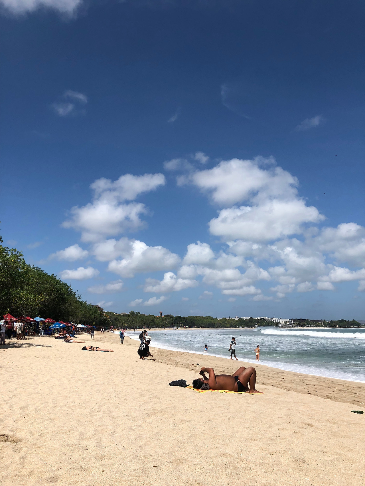 우리는 같이 아침을 먹고, 꾸따 비치로 향했다. 가는 길에는 옷, 가방, 드림캐쳐 등을 파는 상점들이 작은 도로를 두고 양 옆으로 쭉 이어져 있었다. 상인들 마다 싸게 줄 테니 필요한 거 없는지 물었다. 나는 무시하며 걷고 있는데, 도미니크는 그들이 던지는 호객의 말 하나하나 “No, thanks.”라고 다 대답해주었다.